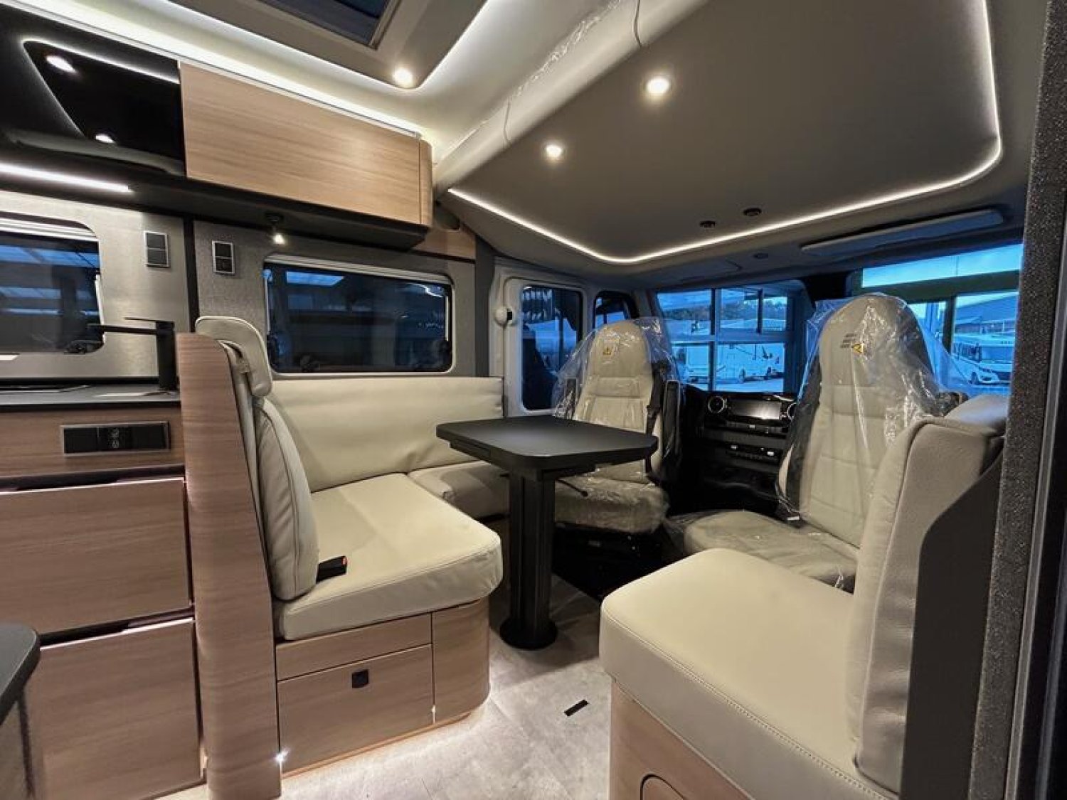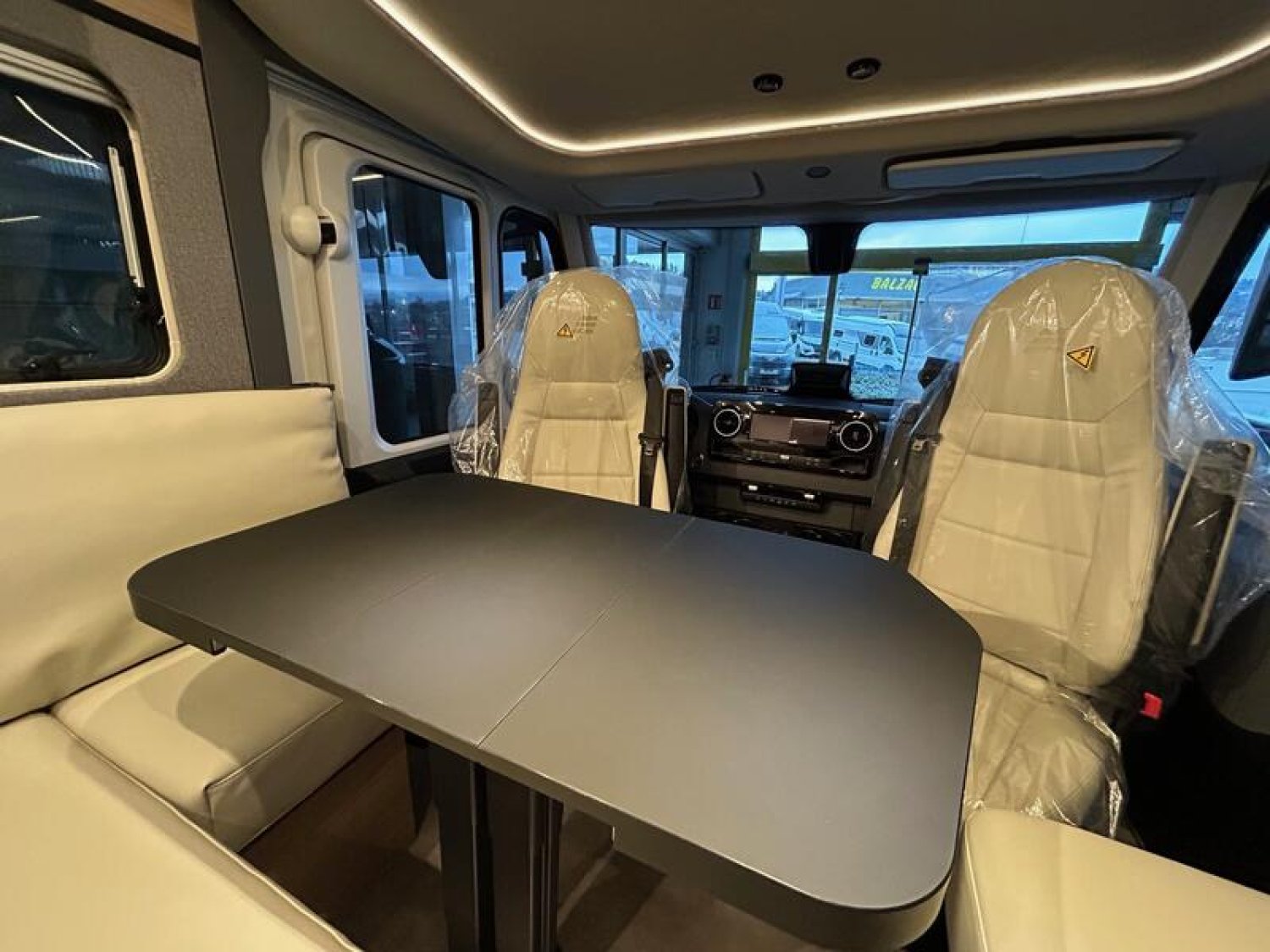 Finition Premium Boîte de vitesses automatique 9G-TRONIC incluant la fonction Hold Feux full LED HYMER Premium Essieu avant renforcé Rangement pour smartphones avec fonction de recharge sans fil et indicateur du niveau de charge Pack Acoustique Mercedes-Benz Frein de stationnement électrique Instrumentation combinée avec écran Pixel-Matrix Mercedes-Benz Pack chargement pour le tableau de bord avec 2 x prises USB-C 5 V / 1 x prise 12 V Volant cuir (uniquement avec la boîte de vitesses automatique) Volant multifonction Régulateur de vitesse avec commandes au volant Climatisation automatique THERMOTRONIC Régulateur de vitesse actif DISTRONIC PLUS avec commandes au volant Détecteur de franchissement de ligne Assistant vigilance du conducteur Détecteur de pluie Assistant reconnaissance des panneaux de signalisation Radio DAB Système multimédia MBUX avec navigation, intégration pour smartphone, commande vocale et caméra de recul Système multimédia MBUX 10,25" avec caméra de recul, commande vocale et écran tactile : 6305 €