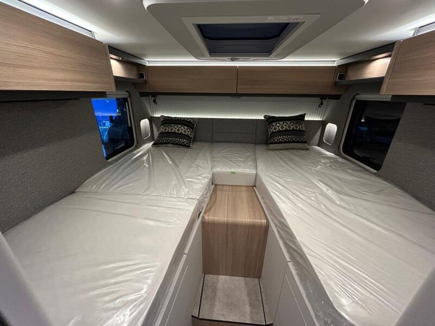 Feux antibrouillard LED y compris feux de virage statiques 795€/Sièges chauffants et support lombaires pour sièges Pilot 725€ + Compartiment de rangement sous le plancher avec tiroir côté passager 595€/Cuir Isola 3015€ + Précâblage panneau solaire 170€/Porte cellule confort avec baie, store occultant, poubelle intégrée et double verrouillage 400€ + Lanterneau à ventilation électrique 40 x 40 cm avec fonctions ventilation et extraction au niveau de la cuisine 455€/Lanterneau panoramique à manivelle HYMER 80 x 50 cm à double vitrage à l'arrière 595€ + Marchepied électrique pour porte conducteur 455€/ISOFIX 260€/Serrure de sécurité pour porte conducteur et porte cellule 595€ + Ventilation des toilettes 295€/Toit en polyester renforcé 695€/Fermeture centralisée de la porte conducteur, porte cellule et portes soute garage 700€ + Système de couchage avec sommier à assiettes (lit(s) arrière) 495€/ Tiroir et bac comme espaces de rangement dans la dînette 295€/Table extensible avec réglage en longueur 600€ /Douche extérieure dans le garage 290€ + Filtre à gaz pour inverseur automatique des bouteilles 195€/résistance électrique 1.800 W 595€/ Support TV 32" 375€ + Filtre pour le circuit d'eau propre 250€/ Routeur Wi-Fi 5G 2005€/Volet de protection pour l'intimité 500€ + Coussin supplémentaire pour lits jumeaux avec accès confort : 15808 €