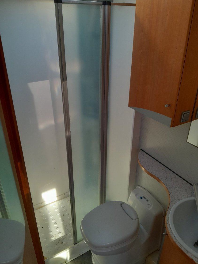 autoradio CD, TV+antenne auto, occultants/moustiquaires, radar de recul, porte 2 vélos, batterie AGM, panneau solaire, store, salle d'eau XL