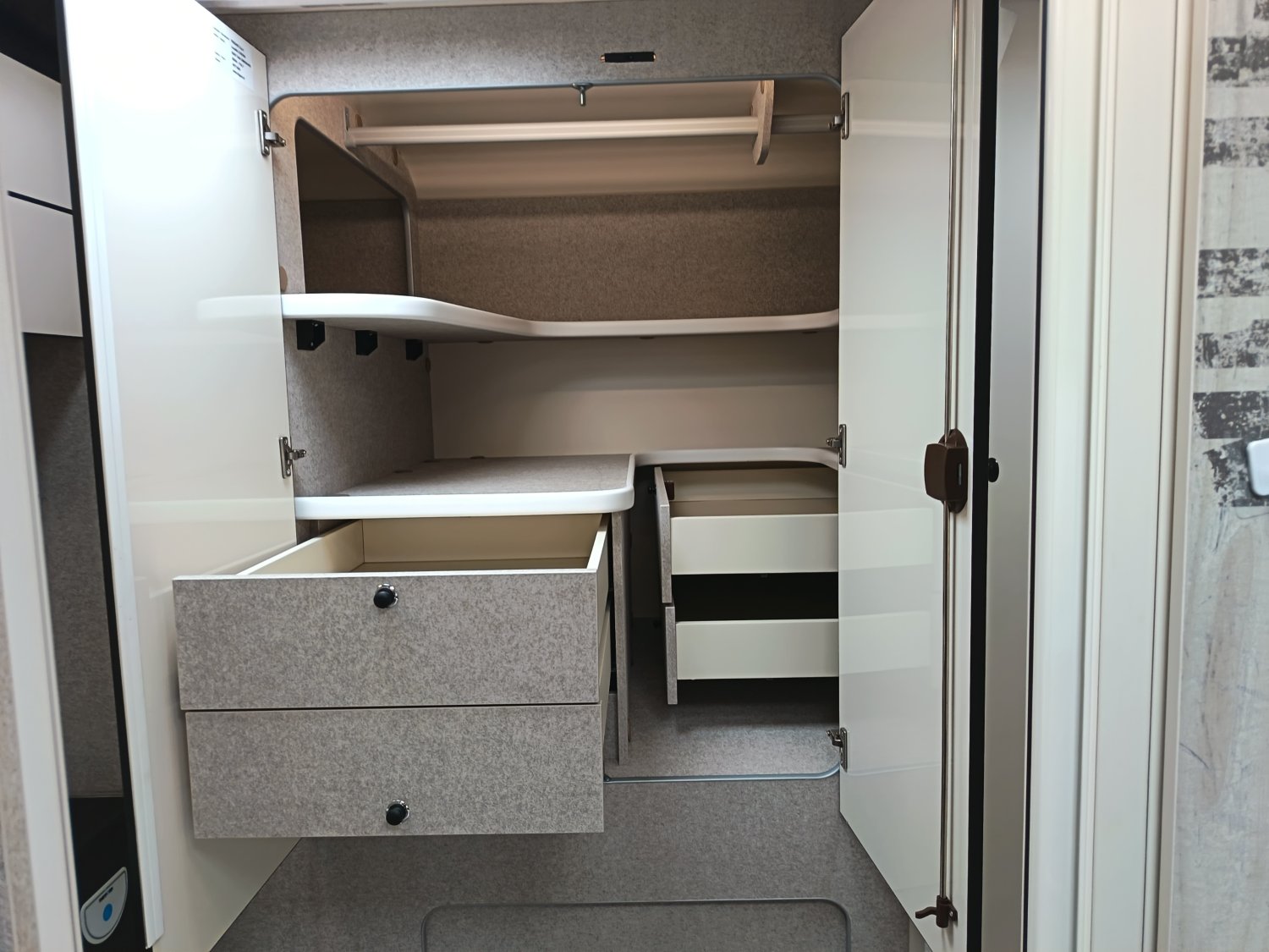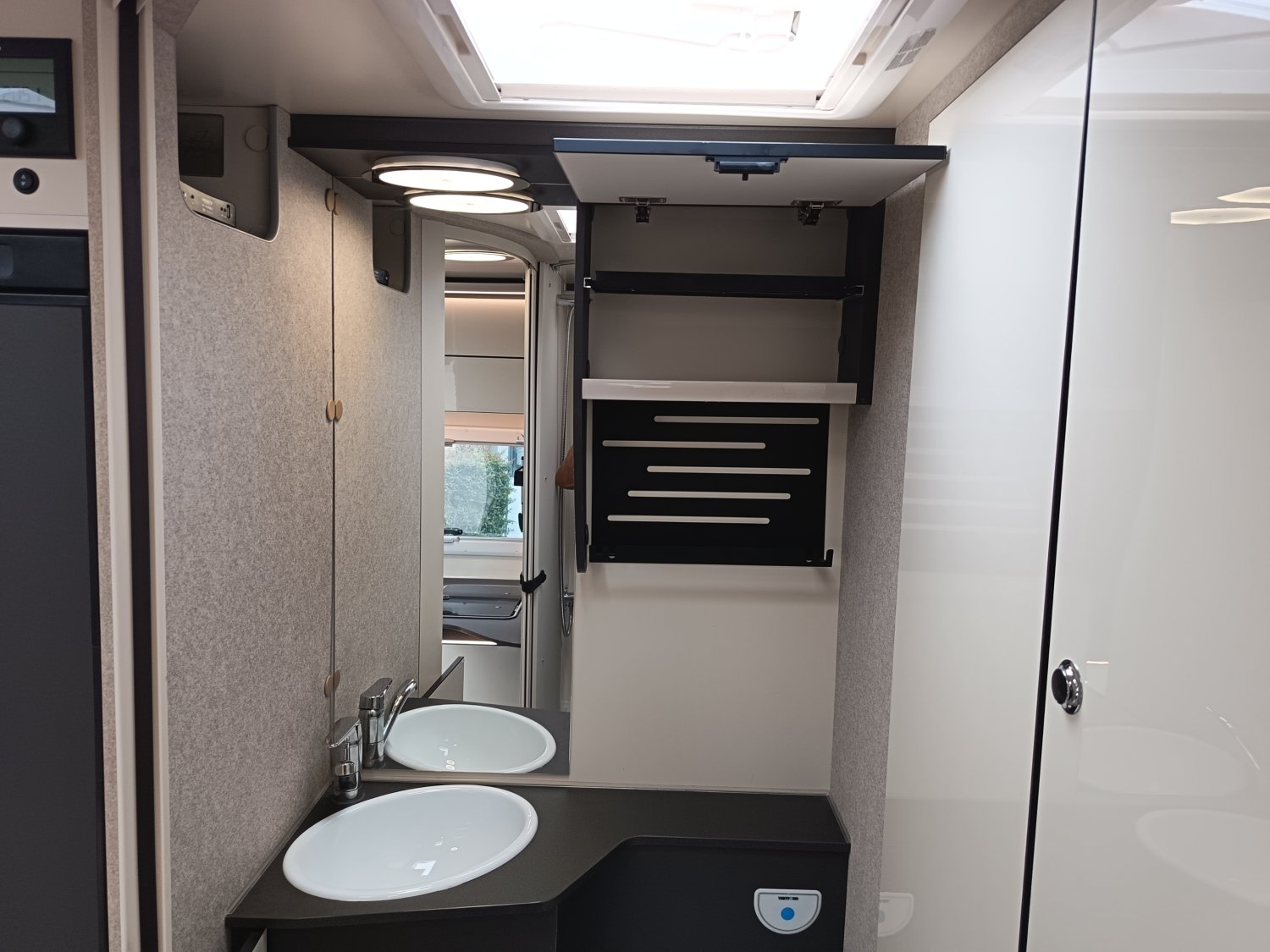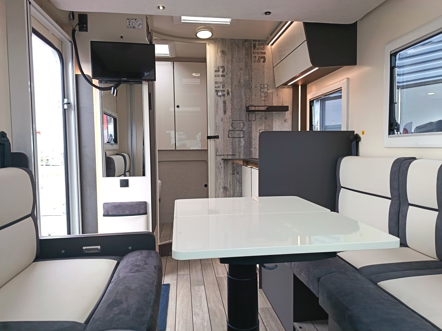 Occasion très récente, première main, très peu utilisé, tout petit kilométrage et très bien équipé. Format très compact avec une largeur de 2.15m et une longueur de 6.39m seulement. Implantation avec grande salle de bain arrière, dressing, toilette séparé, lit de pavillon électrique 2 places et maxi salon en face à face.