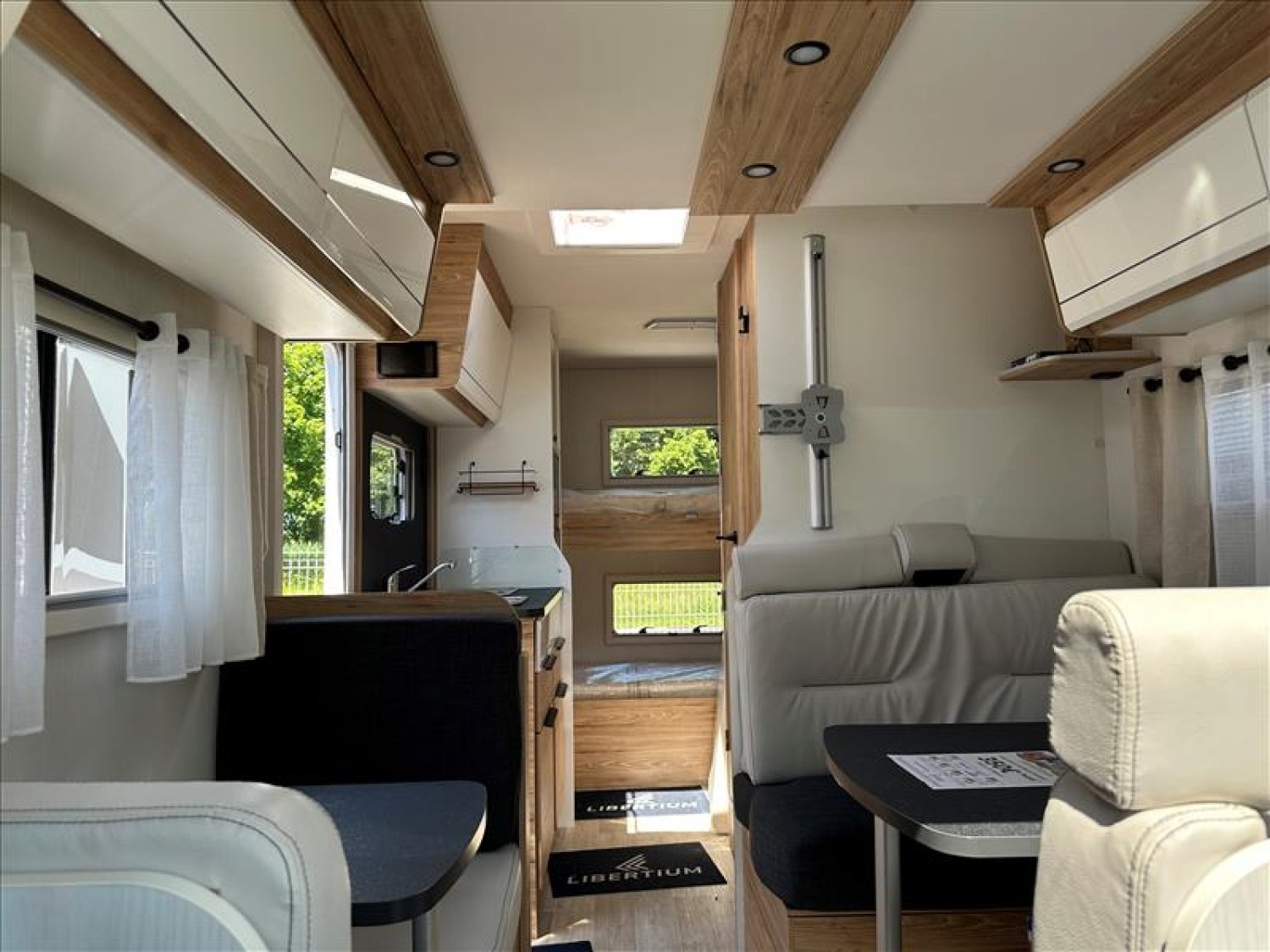 ABS, Airbag conducteur, Baie double vitrage, Revêtement polyester sous plancher, WC cassette extractible à roulettes, Occultations cabines à ventouse, Pare choc peint, Bas de caisse ALU, Cache grilles frigo, Réchaud 3 feux, Réfrigérateur 160 L, Lit pavillon électrique, Matelas confort, Cerclage optiques + calandre noire,, Chauffage truma combi 6, Clim manuelle, Coffre à gaz 2 bouteilles, Crash Sensor TRUMA, Eclairage extérieur à LED, Feux diurnes, Fix and Go Kit, Rétroviseurs dégivrants et électriques, Sièges pivotants cabine et réglables en hauteur, Toit ouvrant panoramique, Verrouillage centralisé cabine,