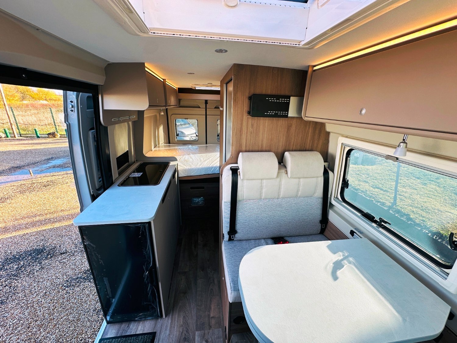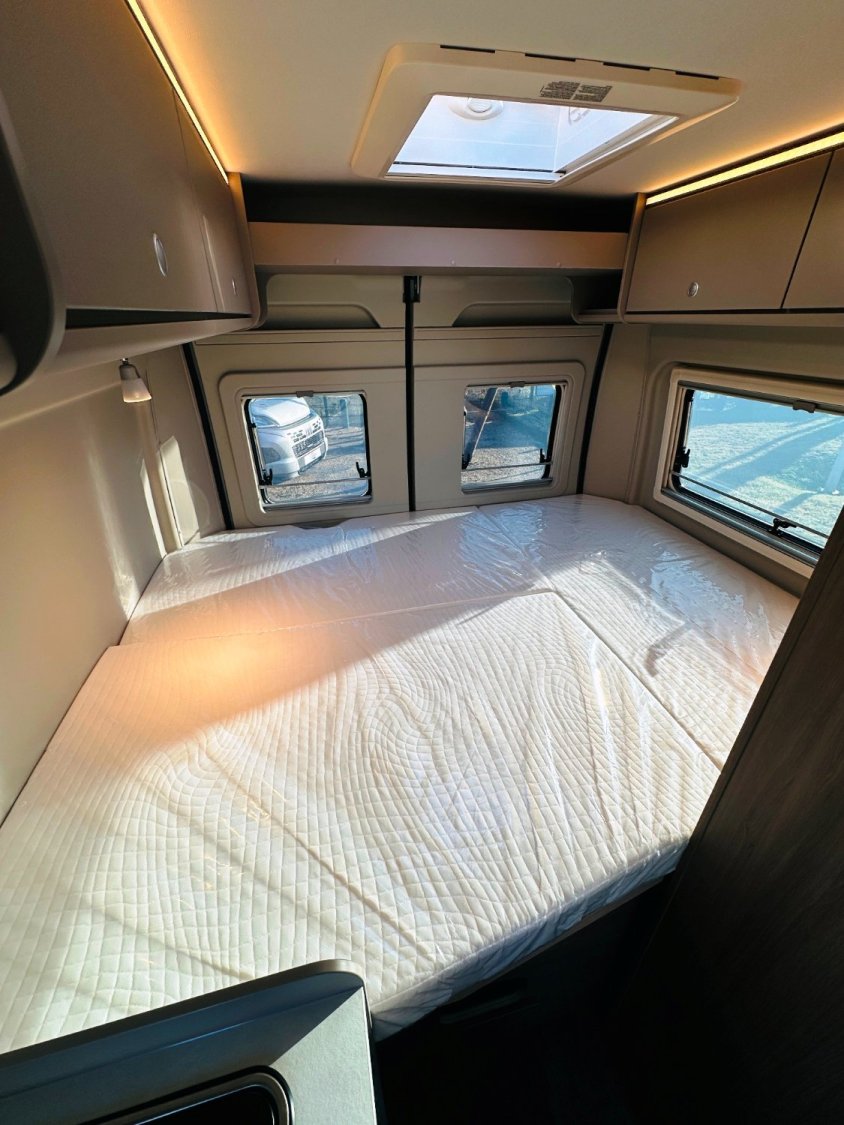 - Pack Pro + : Pack Optique 1 / Pare-chocs peint / Pack Optique 2 / Jantes alliage / Pack Confort / Réservoir carburant 90 l / Stores plissés de cabine / Store extérieur 3,75 m (coloris noir) / Sérigraphie pro / Baies à cadre affleurant / Salle de bain vario / Eclairage LED intégré au-dessus des meubles de pavillon / Meuble de pavillon AR périphérique / Toit panoramique de cabine