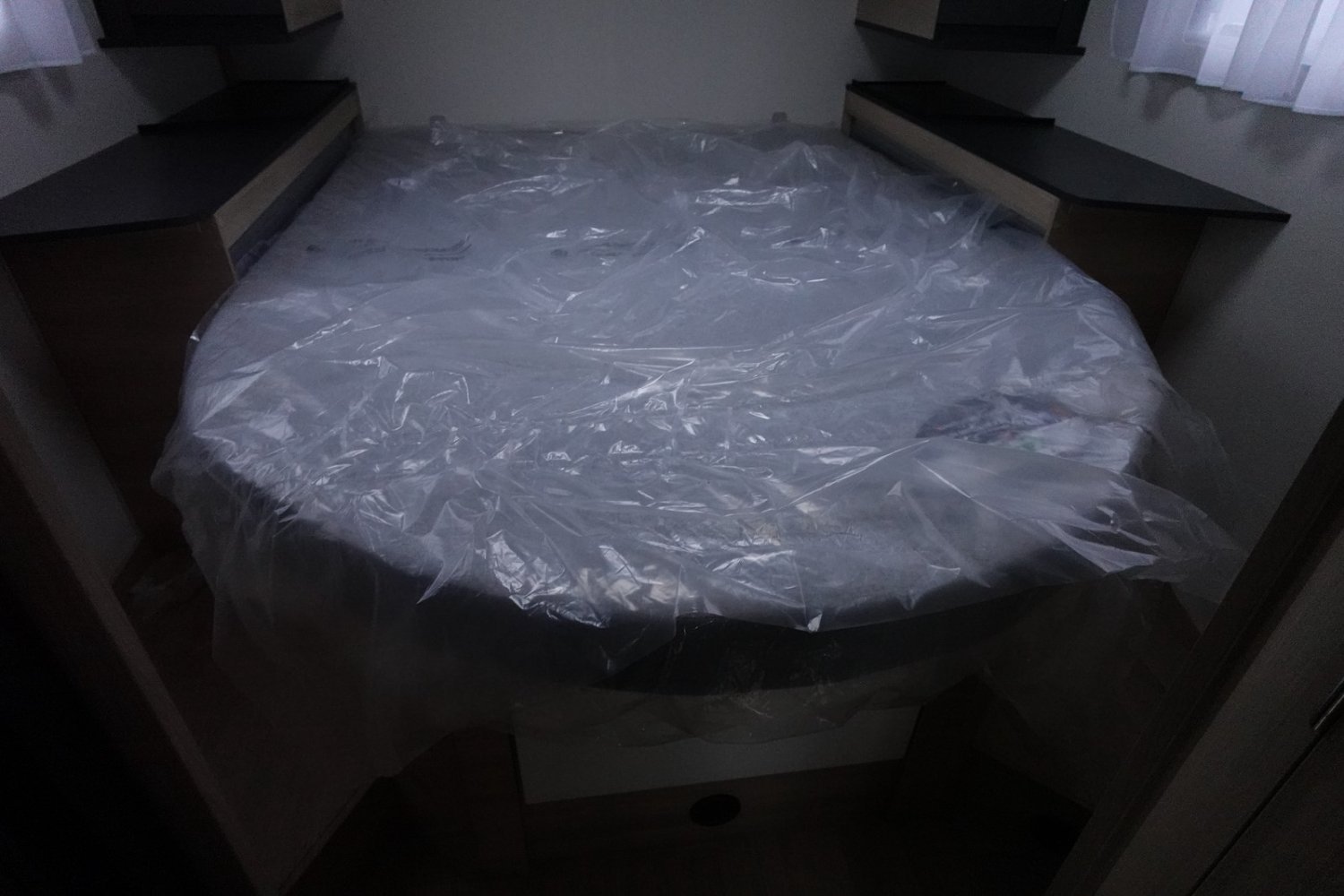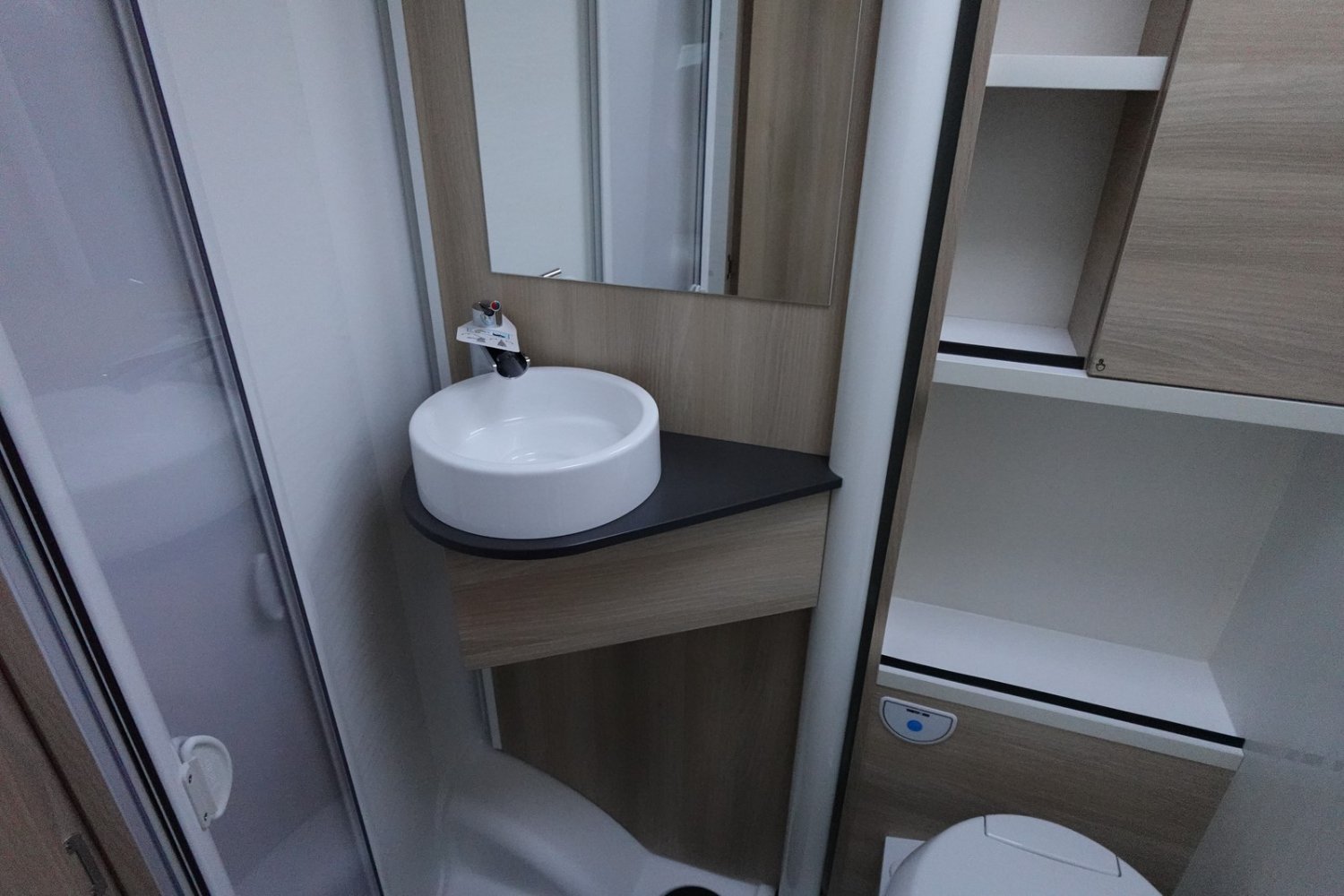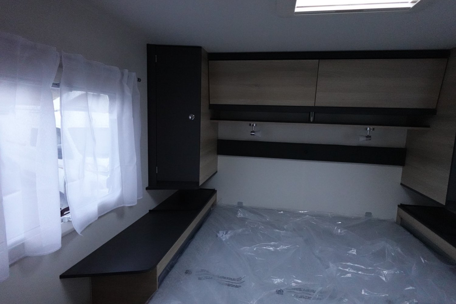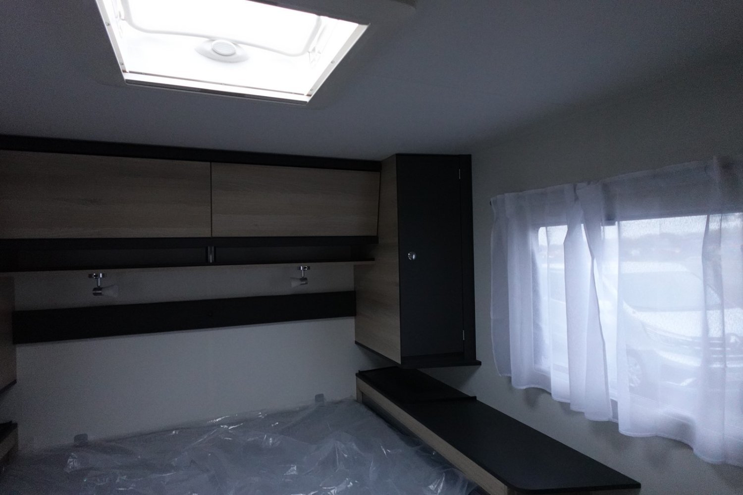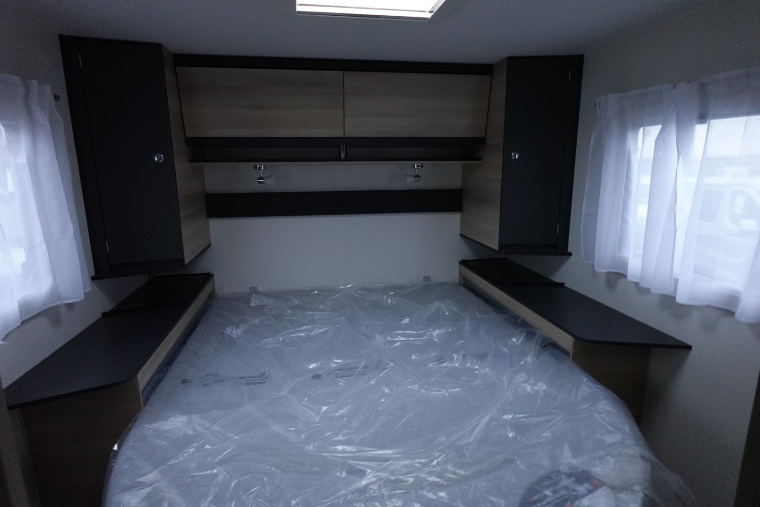 Intégral compact de 6.61m comprenant un salon avant panoramique, une salle d’eau DUO’SPACE avec paroi de douche pivotante, un lit central, un lit de pavillon 2 places et une cuisine avec de nombreux rangements.