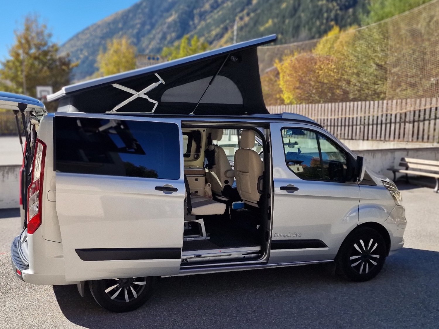 - Couchages 4 personnes (toit relevable + lit couchage bas).
