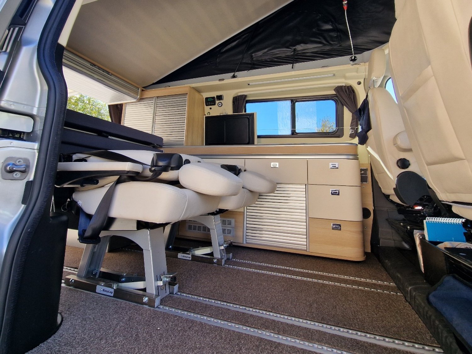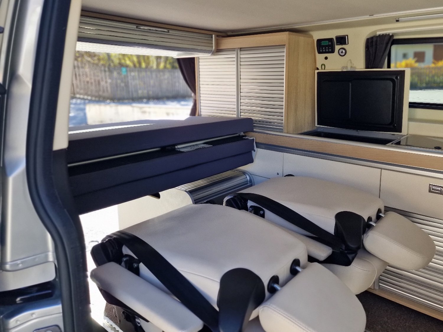 - Sièges avant pivotants et chauffants. - 2 sièges arrières individuels avec accoudoirs sur rail aéro.