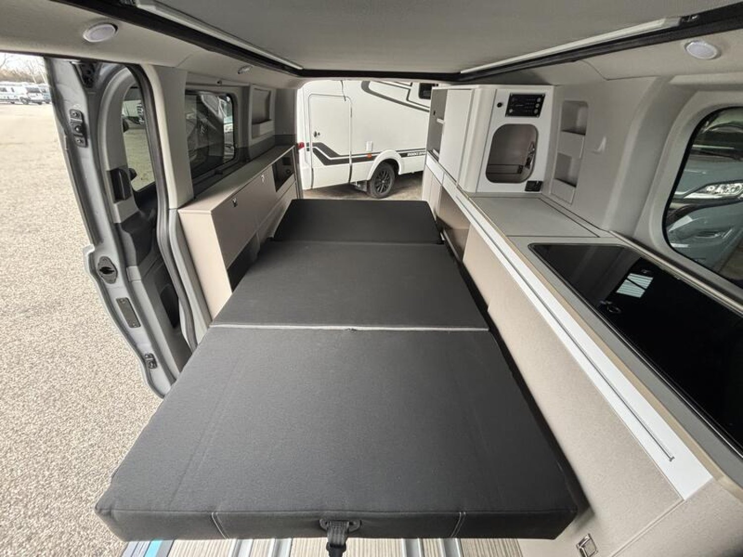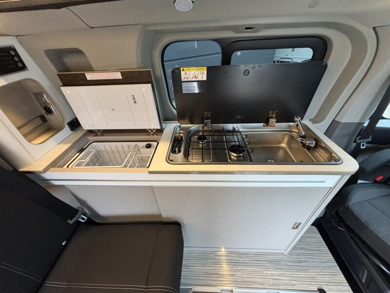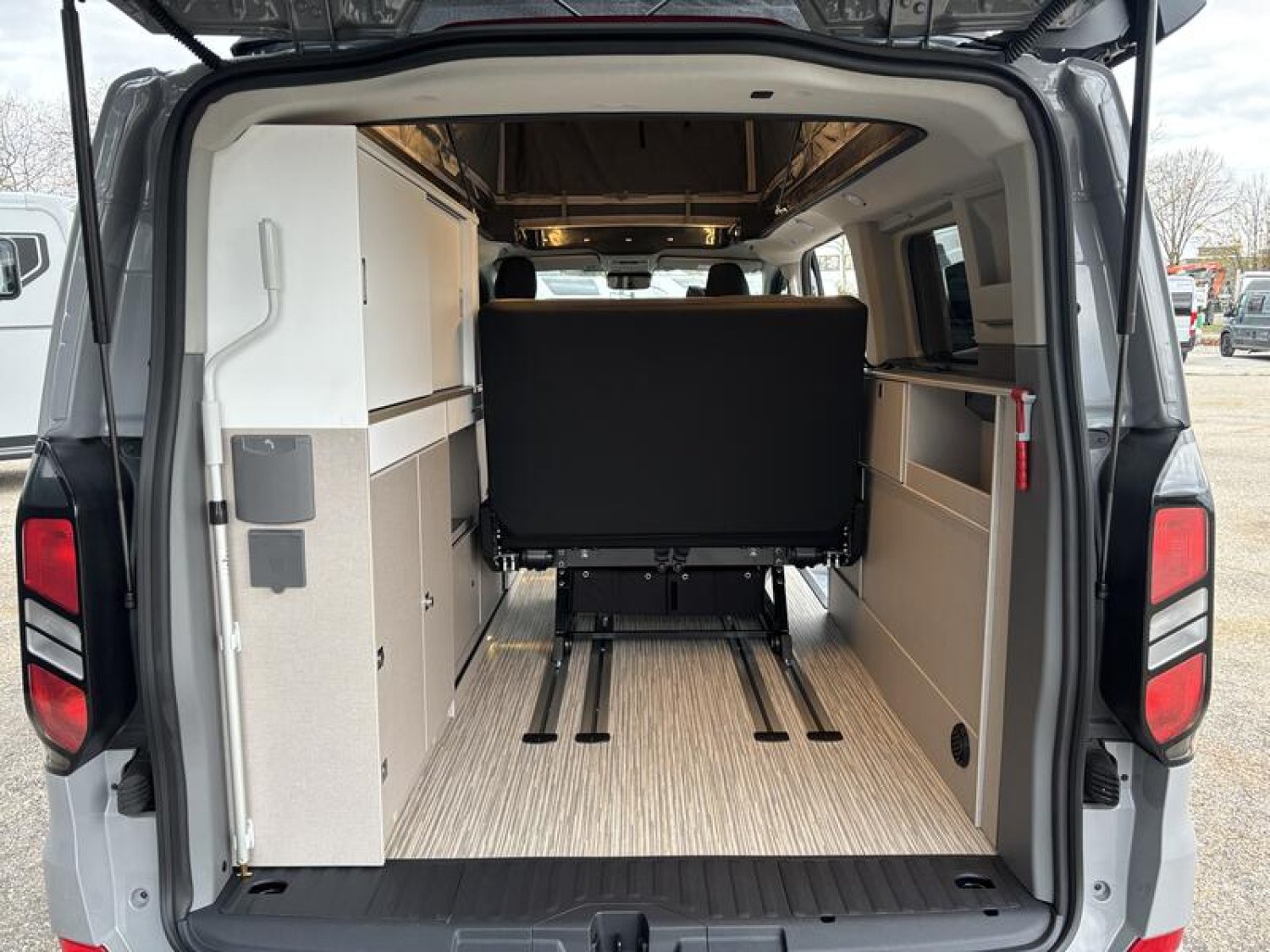 SERIE LIMITEE B66 Ford Tourneo Custom V 710 - 170 ch – Titanium / Boîte automatique / Peinture extérieure Gris Matter avec toit relevable anthracite / Réservoir carburant 70 litres / Climatisation bi-zone (zone conducteur et passager) / Pré-équipement attelage / Jantes alu 17’’ avec pneus 4 saisons / Store extérieur anthracite 3,0 m / OEillets d'arrimage pour le système de rails coulissants /Chauffage stationnaire Diesel 2 kW/Régulateur de vitesse adaptatif et système Stop & Go / Système de navigation intégré écran 13‘‘ / Caméra de recul / Avertisseur d’angle mort / Système de reconnaissance des panneaux de signalisation / Assistance au freinage d'urgence / Projecteurs LED / Volant chauffant / Stores occultants cabine et habitation : 0 €