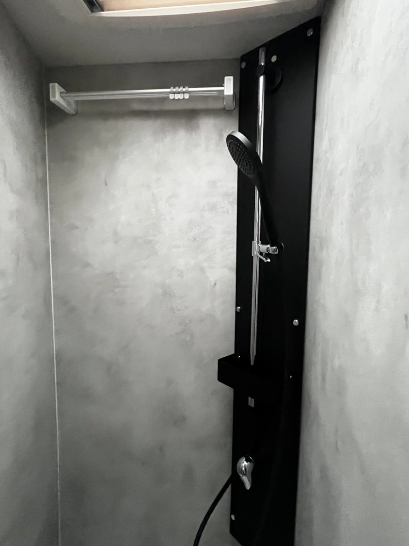 Douchette extérieure dans la soute + vidange électrique des eaux usées