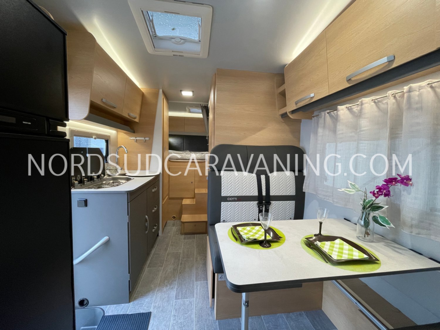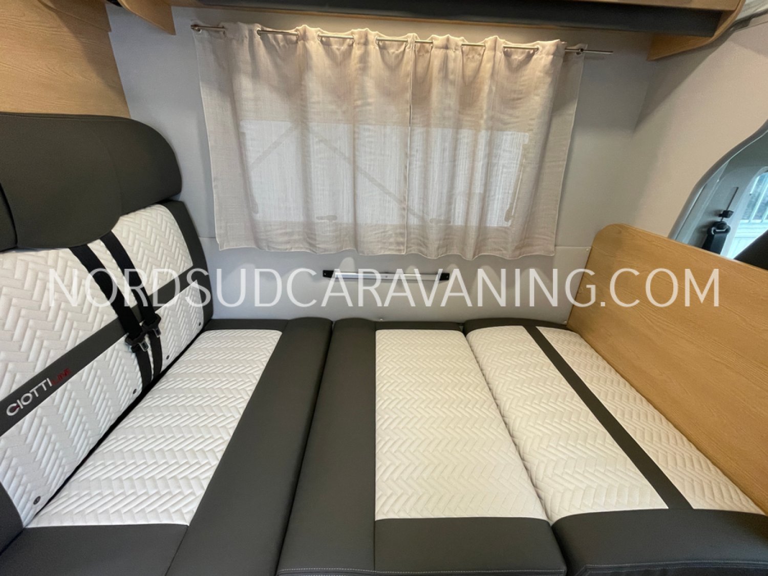 Vous rêvez d’un camping-car familial moderne, compact et autonome ? Découvrez ce Giottiline 440 Siena Première Edition, moins de 7m, un modèle capucine idéal pour voyager à 6 personnes en toute tranquillité.