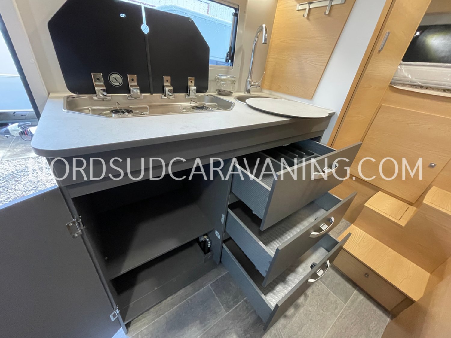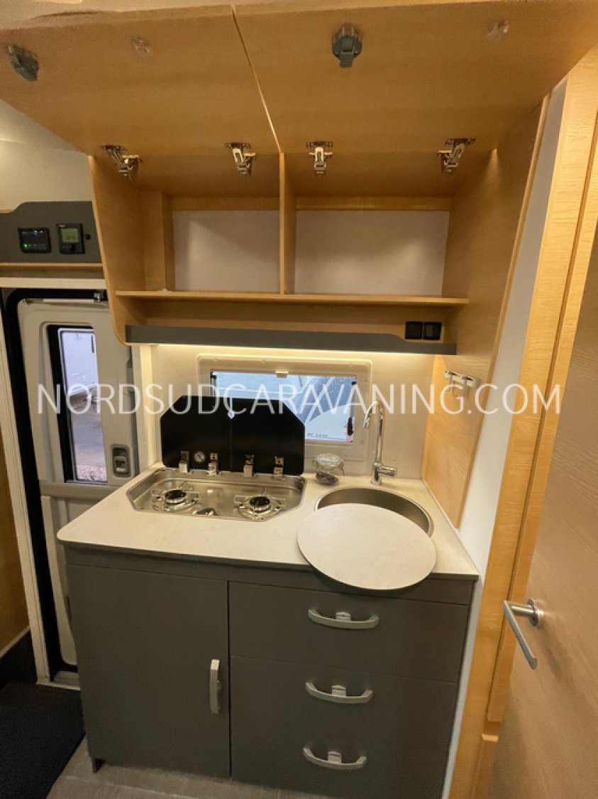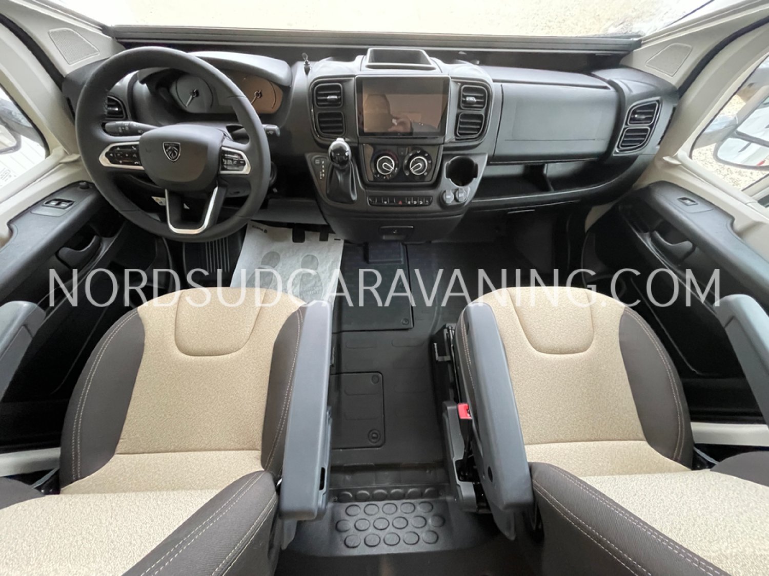 Avec son moteur Peugeot 2,2L – 140 ch et sa boîte automatique, il allie puissance, confort de conduite et consommation optimisée. Son grand espace de vie, ses nombreux couchages et ses équipements modernes en font un compagnon parfait pour vos aventures en famille ou entre amis. Sans oublier sa soute volumineuse qui vous permettra de ranger vos vélos, de retour de balades.
