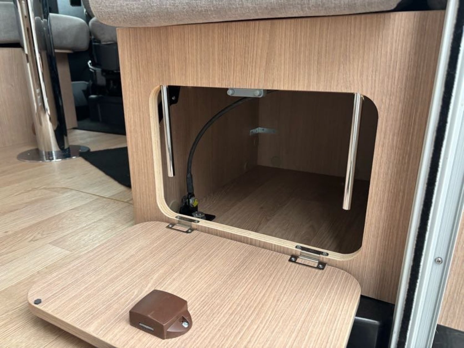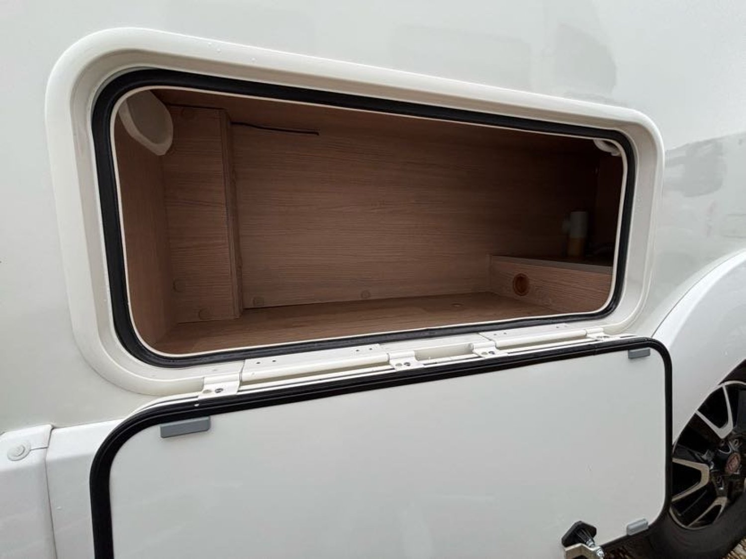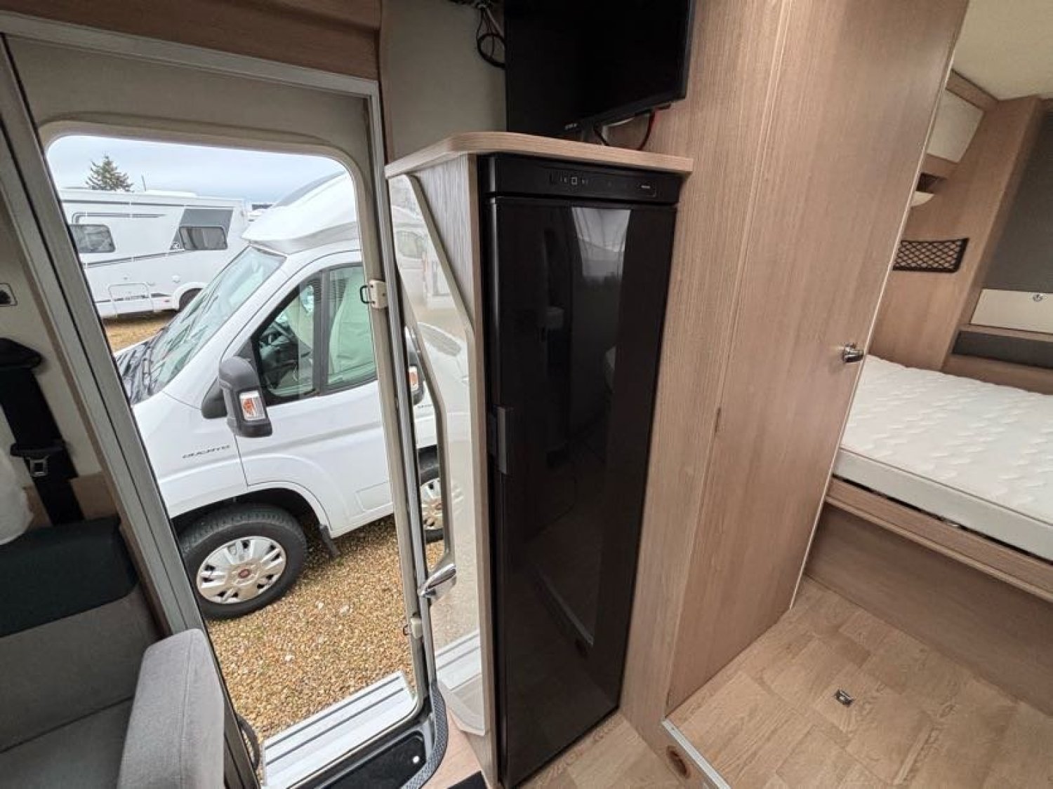 Clim moteur / Régulateur de vitesse / Truma 6 EH (gaz et électricité) / Volet isotherme / Jantes alu 16 pouces / Batterie lithium / Store extérieur / Panneau solaire / Antenne sat auto / TV / Caméra de recul / Bloc multimédia