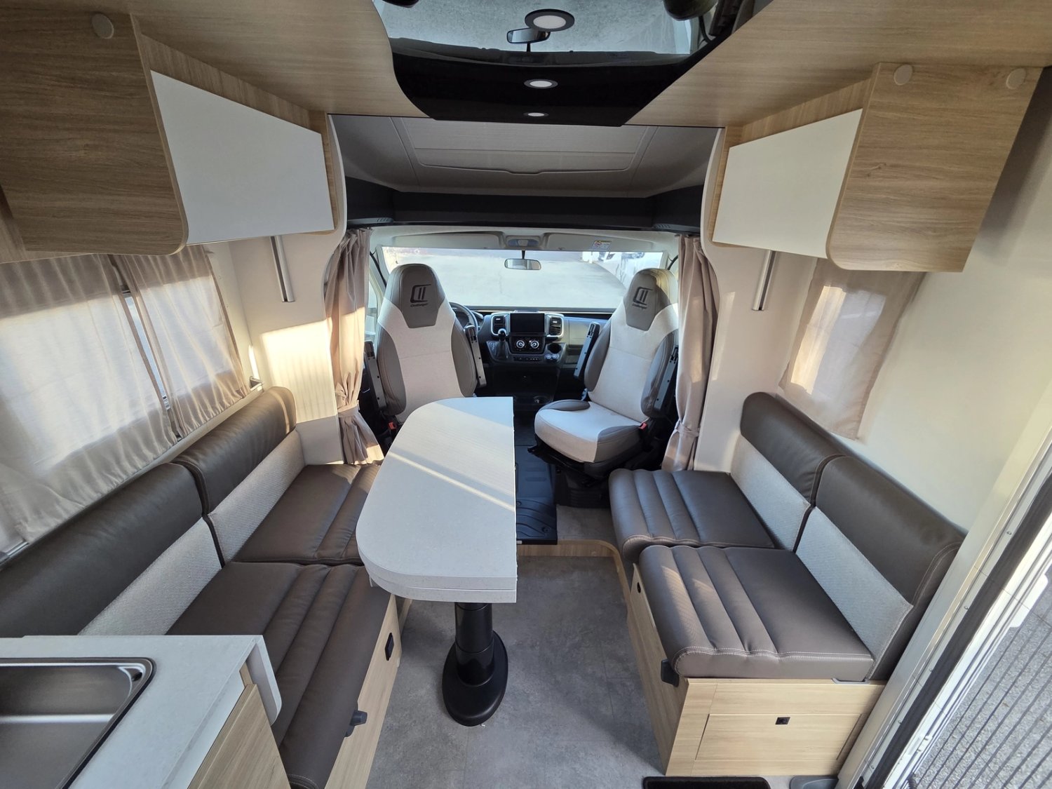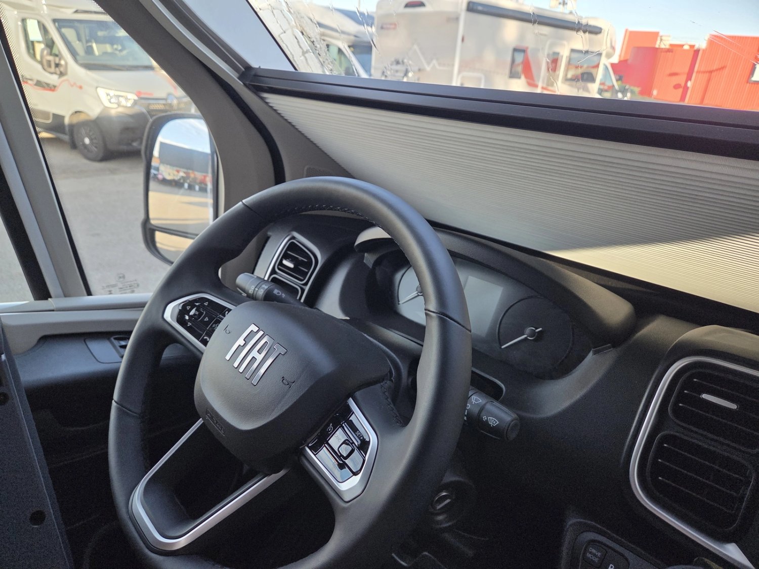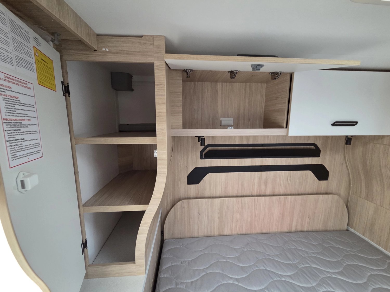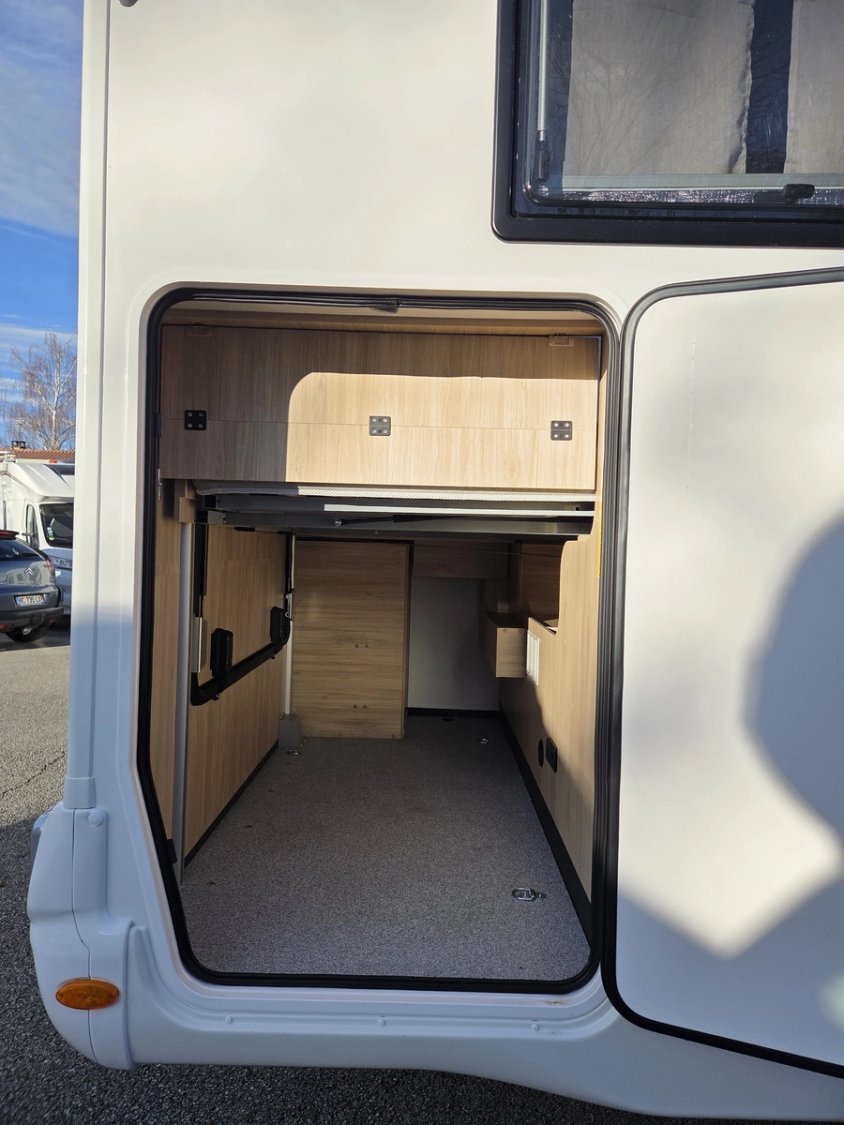 • Climatisation manuelle de cabine • Double airbag • Fix and go • Sièges de cabine pivotants réglables en hauteur avec double accoudoir • Housses de sièges cabine assorties à l’ambiance cellule • Rétroviseurs électriques dégivrants • Régulateur / limiteur de vitesse • ESP • Traction + • Hill descent control Eco pack FIAT : Stop&Start, alternateur intelligent, pompe à carburant à gestion électronique • Isolation marche d'entrée • Porte cellule avec fenêtre • Toit panoramique cabine ouvrant • Lanterneau panoramique (ou double lanterneau) • Rideaux de séparation cabine/cellule • Fenêtres double-vitrage avec combiné stores moustiquaire • Voilages • Charnières placards amorties • Prises USB/USB-C • Conception IRP : toit plancher parois polyester • Technibox • Pare-chocs avant peint • Jantes acier avec enjoliveurs 15'' gris • Pneus 4 saisons • Feux antibrouillard • Porte d’entrée avec fermeture centralisée porteur cellule • Tête de lit • Pré-équipement TV • Chauffage sur carburant utilisable en roulant • Eclairage d'auvent • Penderie • Pré-disposition panneau solaire (MPPT ready) • Précâblage caméra de recul • Fixations Isox