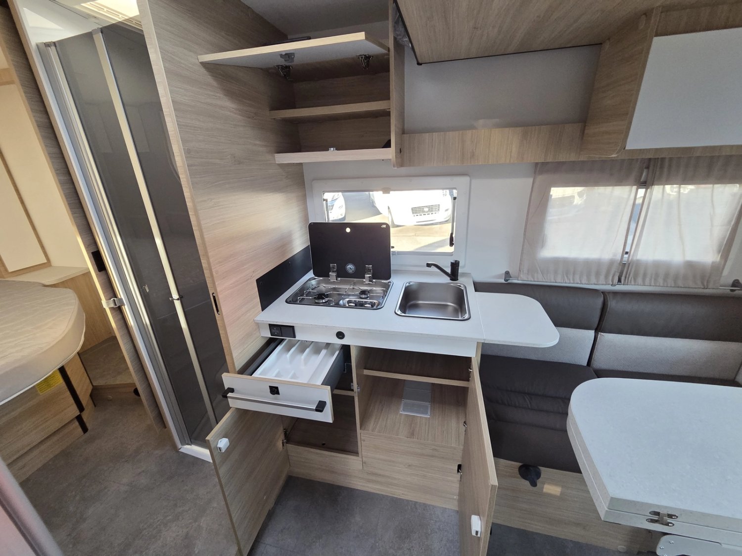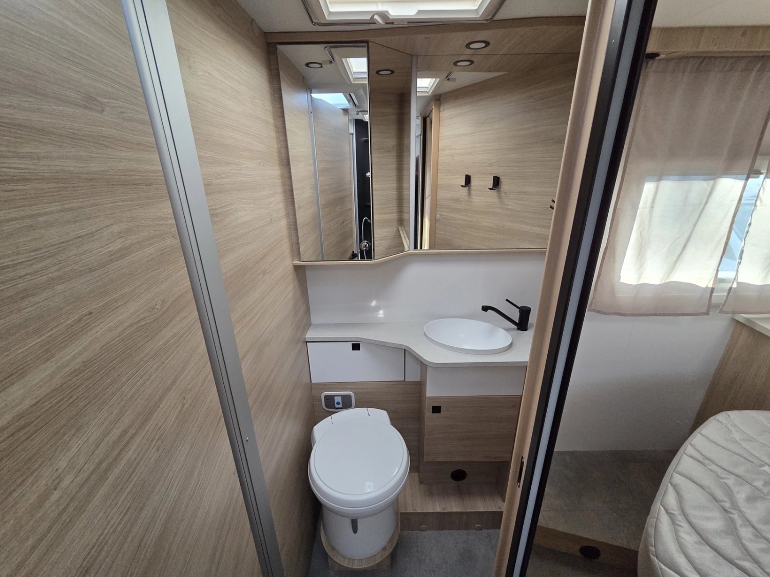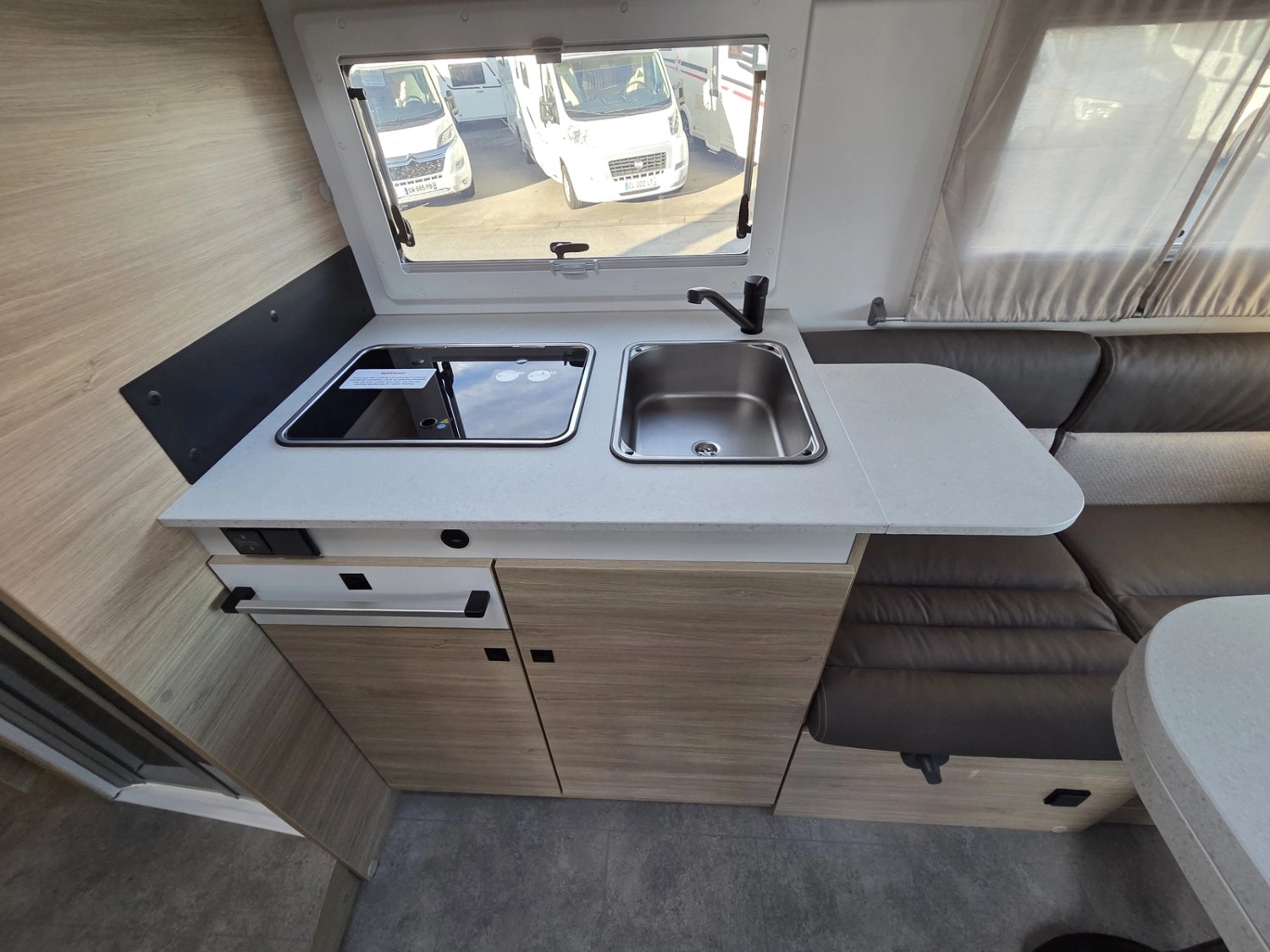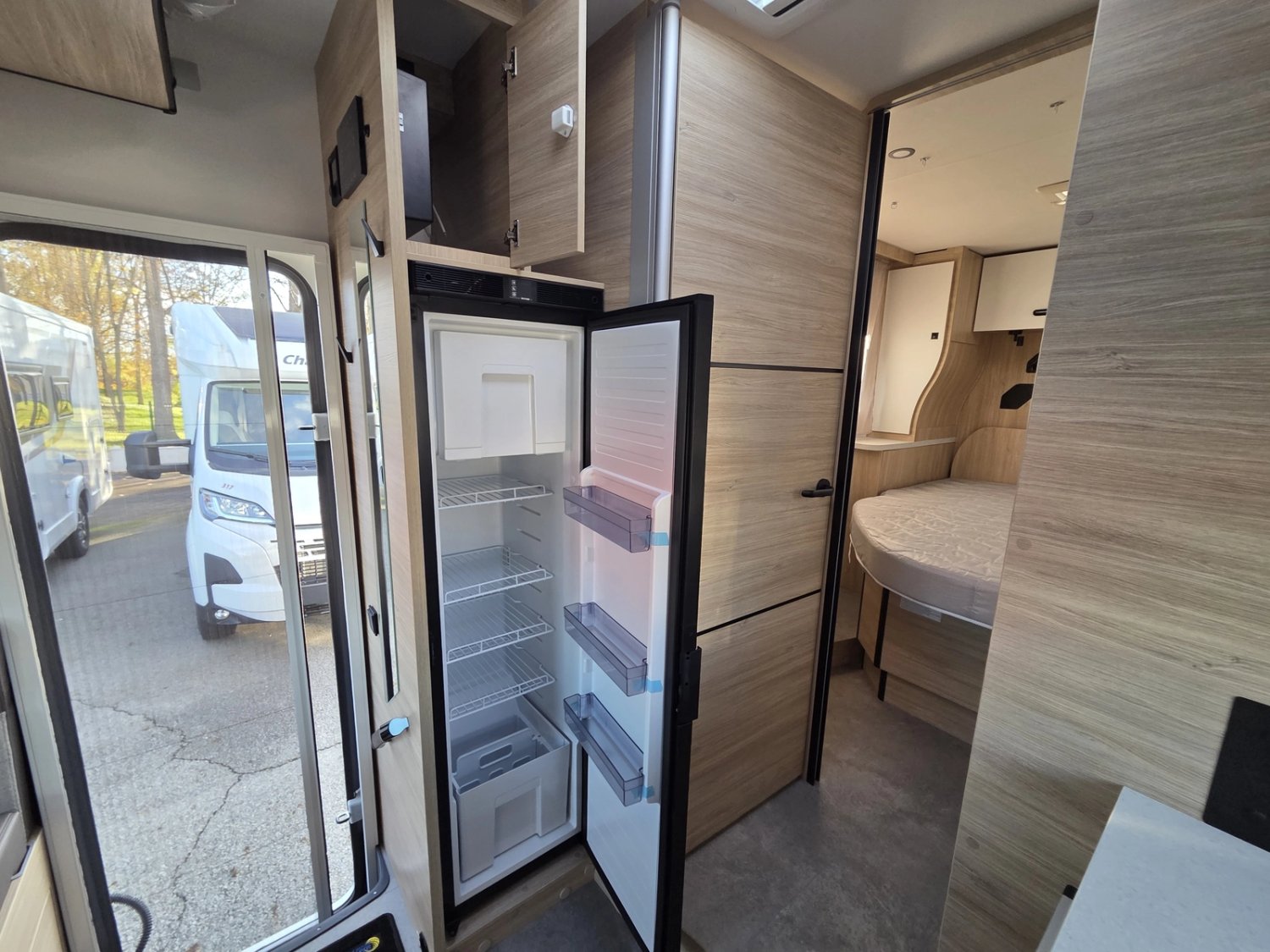 • Climatisation manuelle de cabine • Double airbag • Fix and go • Sièges de cabine pivotants réglables en hauteur avec double accoudoir • Housses de sièges cabine assorties à l’ambiance cellule • Rétroviseurs électriques dégivrants • Régulateur / limiteur de vitesse • ESP • Traction + • Hill descent control Eco pack FIAT : Stop&Start, alternateur intelligent, pompe à carburant à gestion électronique • Isolation marche d'entrée • Porte cellule avec fenêtre • Toit panoramique cabine ouvrant • Lanterneau panoramique (ou double lanterneau) • Rideaux de séparation cabine/cellule • Fenêtres double-vitrage avec combiné stores moustiquaire • Voilages • Charnières placards amorties • Prises USB/USB-C • Conception IRP : toit plancher parois polyester • Technibox • Pare-chocs avant peint • Jantes acier avec enjoliveurs 15'' gris • Pneus 4 saisons • Feux antibrouillard • Porte d’entrée avec fermeture centralisée porteur cellule • Tête de lit • Pré-équipement TV • Chauffage sur carburant utilisable en roulant • Eclairage d'auvent • Penderie • Pré-disposition panneau solaire (MPPT ready) • Précâblage caméra de recul • Fixations Isox