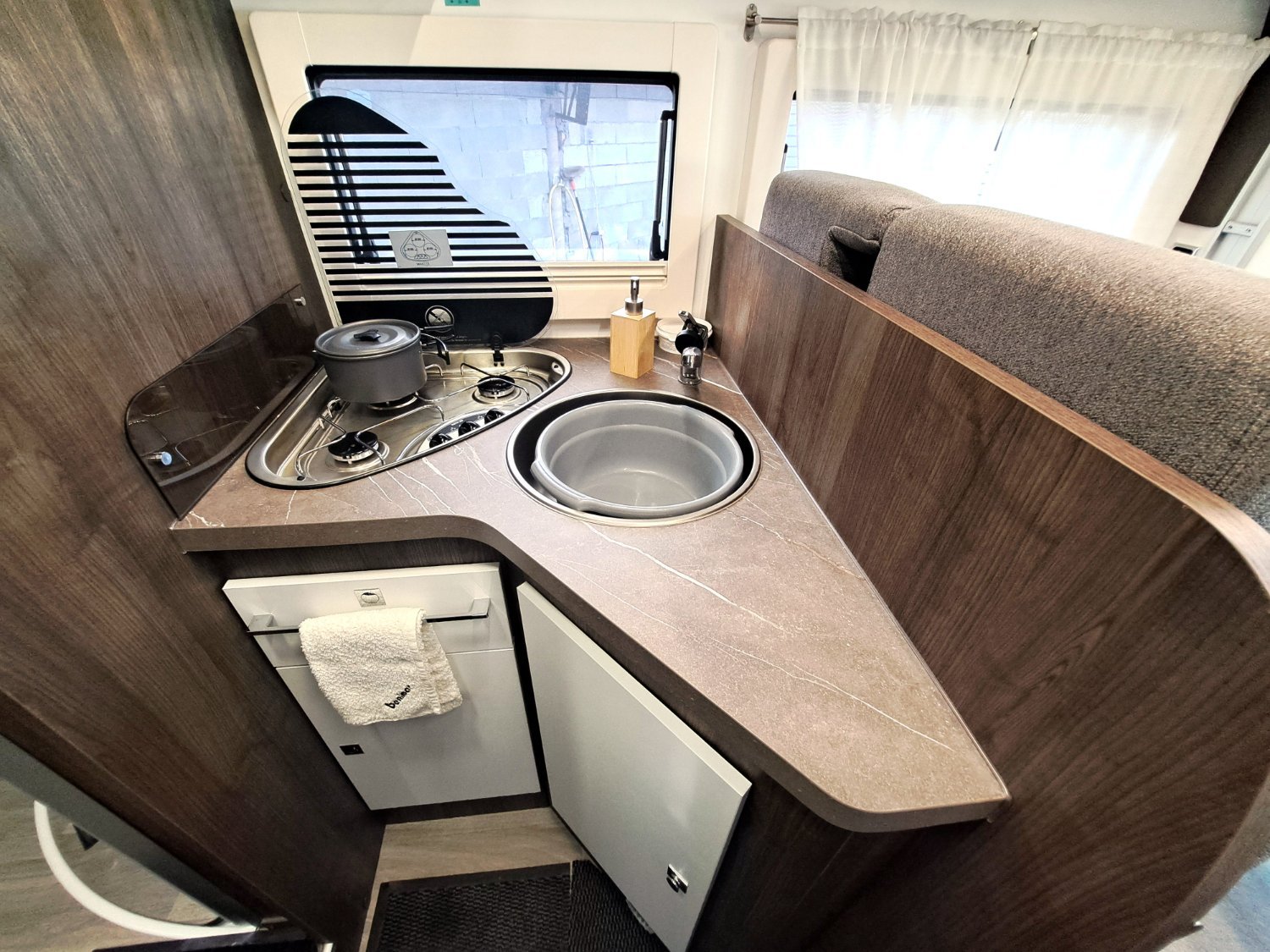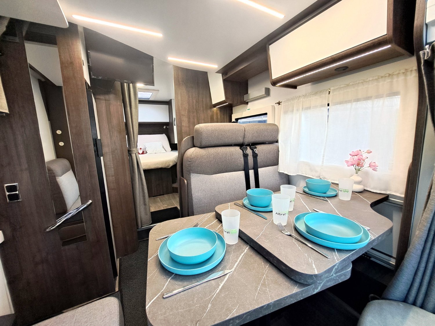 Loué avec le matériel nécessaire à son utilisaton (cable de raccordement électrique, tuyau de remplissage d'eau, cales de niveau, équipement chaînes pour la montagne...)