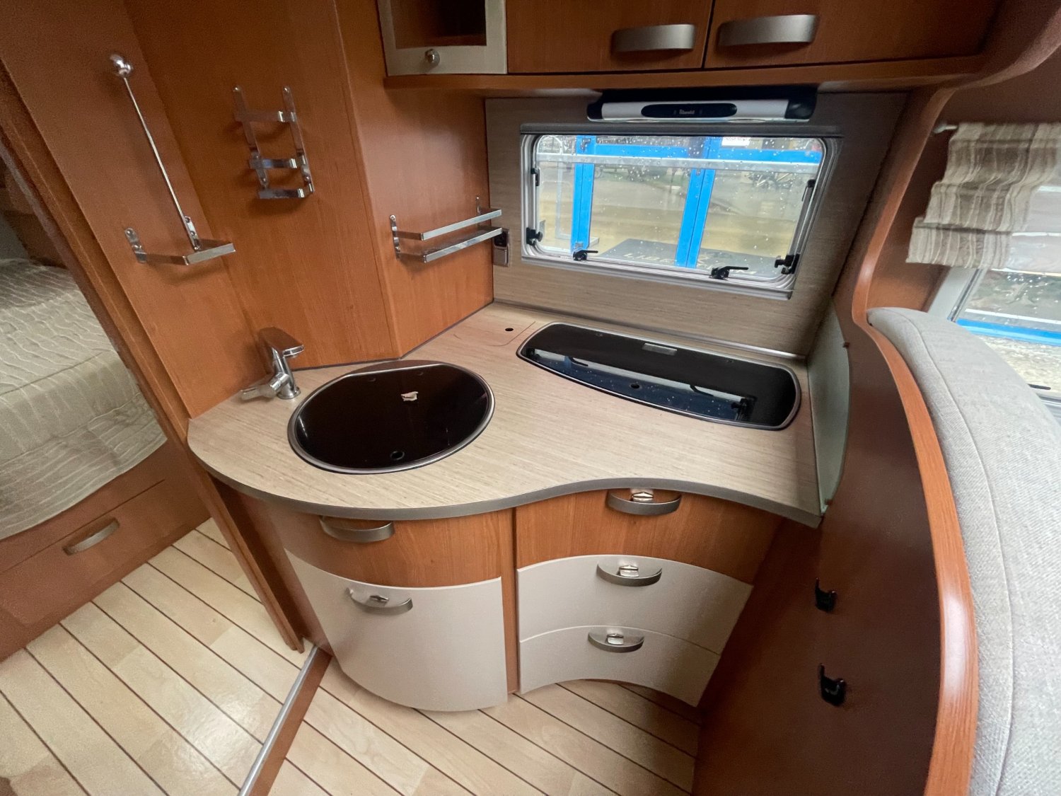 Store exterieur, Panneau solaire, Porte 3 vélos, Climatisation porteur, Boite manuelle 6 vitesses, Lit central 190x140, WC et douche séparés, Cuisine 3 feux, Poubelle integré au plan de travail cuisine