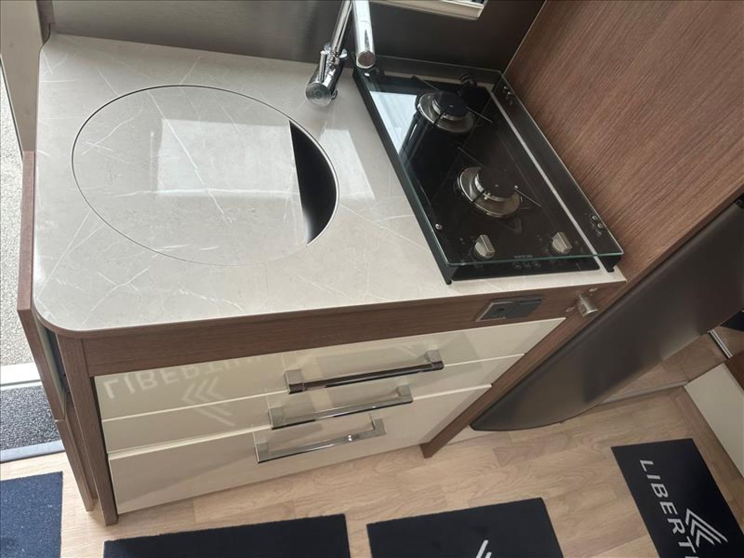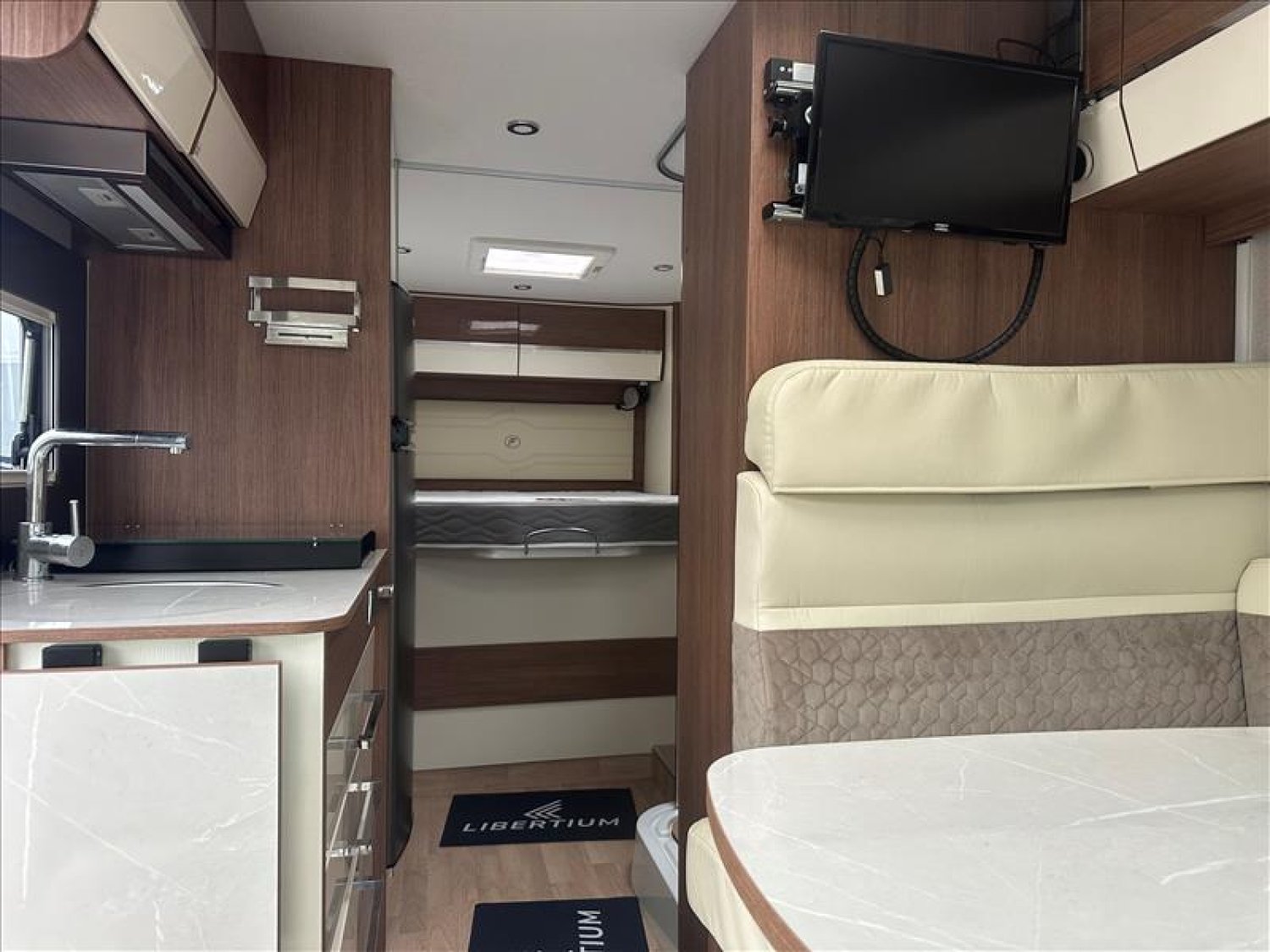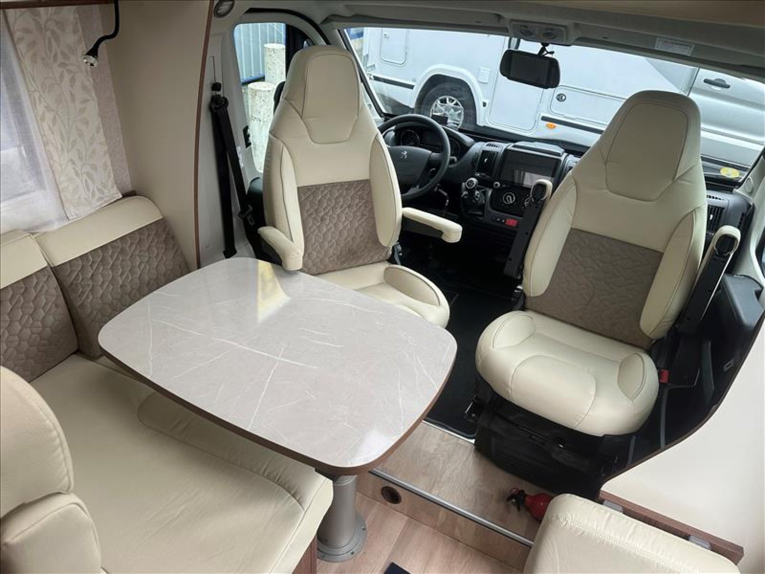 Vitres et pare-brise teintés, Airbags conducteur et passager, Verrouillage centralisé à télécommande, Vidange manuelle d'eau usée, Chauffage air pulsé Truma Combi 4 avec boiler 10 L, Pré-cablage télévision et haut-parleurs, Prise 220 V - Prise 12 V - Prise TV, Eco pack (Start & Stop + alternateur intelligent), Ransformateur chargeur avec coupleur séparateur, Port USB chambre, Régulateur et limiteur de vitesse, Climatisation cabine manuelle, Lève-vitres électriques, Tableaux de contrôle digital (eau, batterie, température int, Éclairage à LED au-dessus de la porte cellule