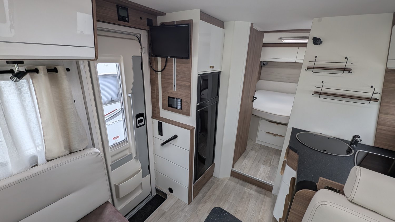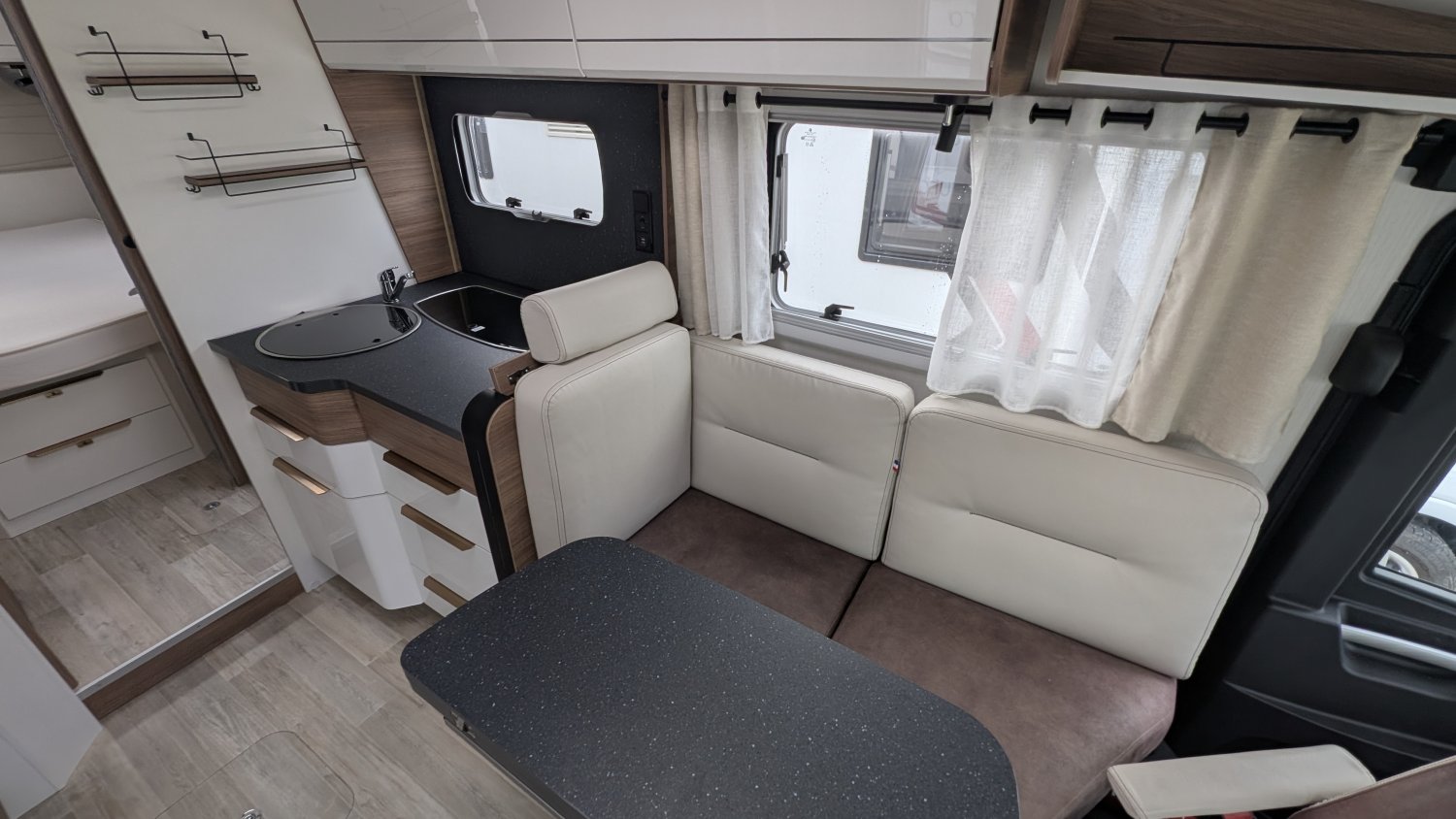 Volant et pommeau cuir, JANTE 16 '' Alu, Apple Carplay & Android Auto, Télévision 19", Tableau de bord gris Fiat, Autoradio 8" DAB, Caméra de recul, Centralisation, Commandes au volant, Hauts parleurs cabine et en cellule, Moustiquaire, Occultation cabine, Panneau solaire 100w HP, Porte cellule vitrée