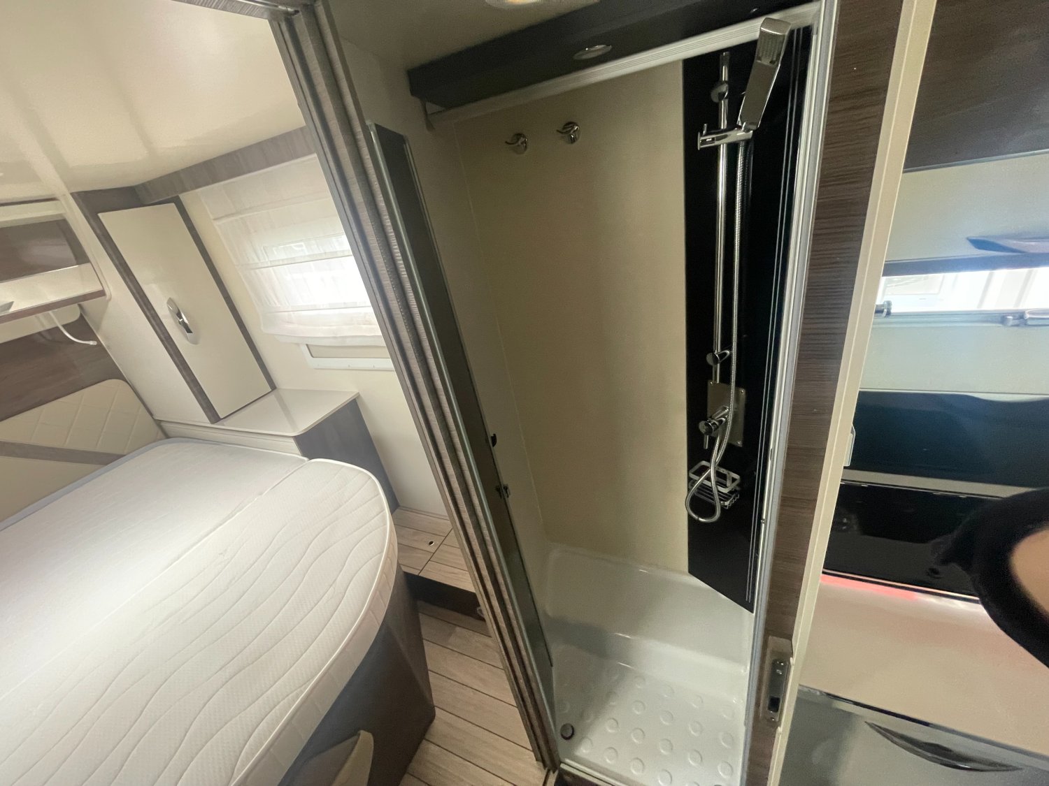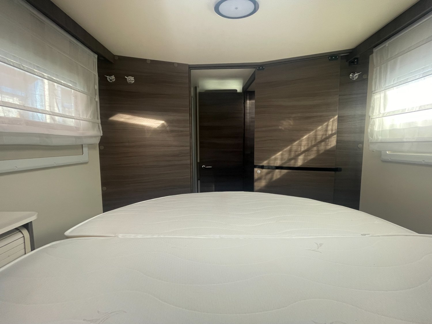 Housses de sièges cabine, Marchepied électrique, Moustiquaire de porte cellule, Réfrigérateur trimixte automatique (220 V, 12V, GAZ) 145 L, Sièges cabine pivotants, Télécommande Plus Combi, Antenne satellite, Lit central, Douche et toilette séparés, Antenne intégrée au rétroviseur, Caméra de recul intégrée à l’autoradio, Climatisation manuelle de cabine, Régulateur de vitesse avec limiteur de vitesse, Lit pavillon