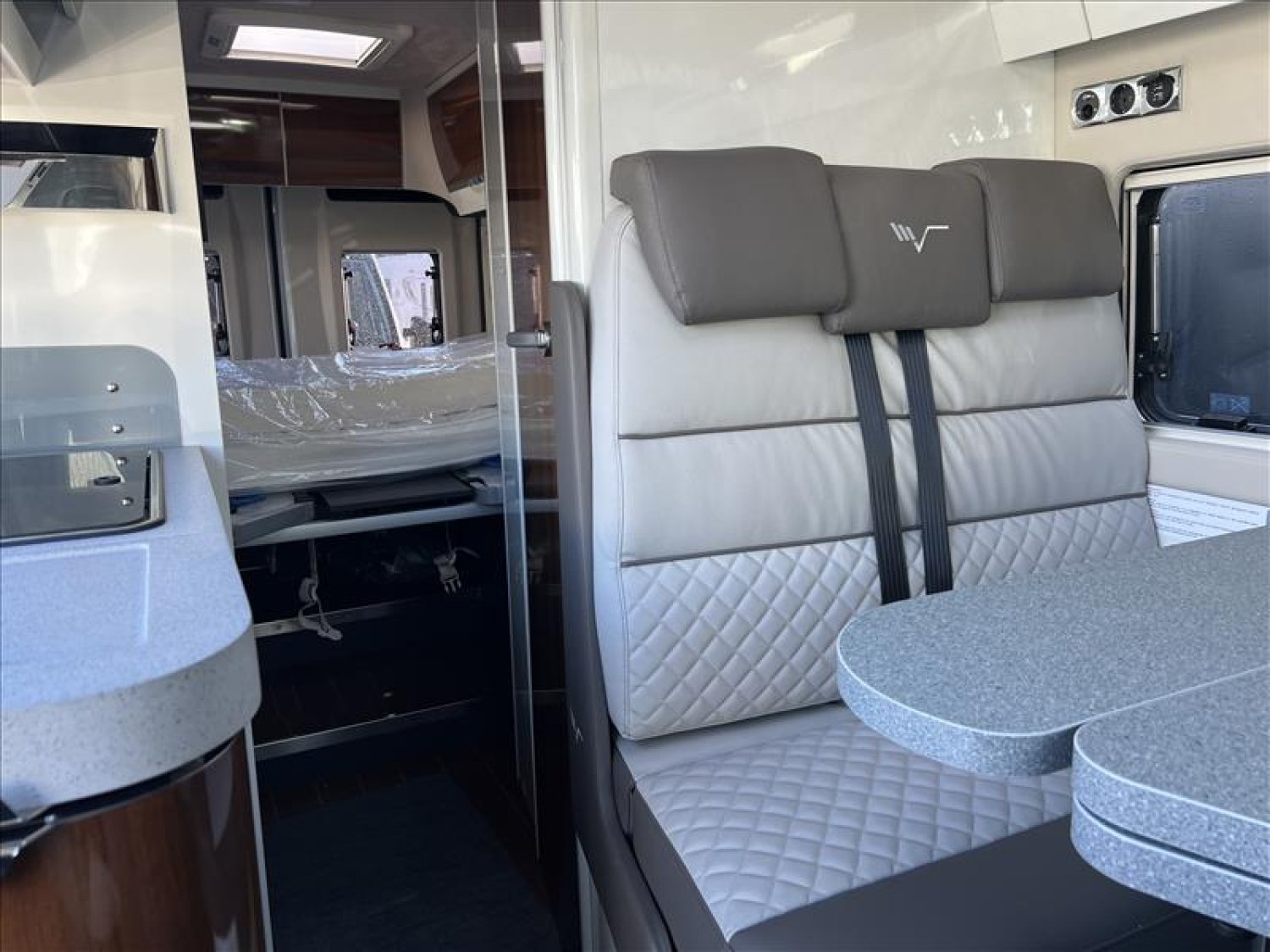 TOIT PANORAMIQUE, LIT JUMEAUX RELEVABLES, RESERVOIR DE GASOIL 90 LITRES, FENETRE EFFLEURANTES, TRAPPE ET RANGEMENT DANS LE DOUBLE PLANCHER, CAMERA DE RECUL, COMMANDE RADIO AU VOLANT, MOUSTIQUAIRE PORTE D ENTREE, STORE OCCULTANT PLISSE DANS LA CABINE