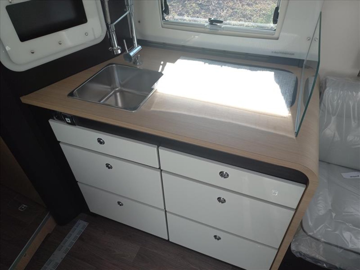 CHAUFFAGE ALDE, DOUBLE PLANCHER, CHASSIS AL-KO, OCCULTATION CABINE, GRANDE CAPACITE DE RANGEMENT, HOTTE ASPIRANTE ENCASTREE, SYSTEME AUDIO INDEPENDANT DANS LA CHAMBRE