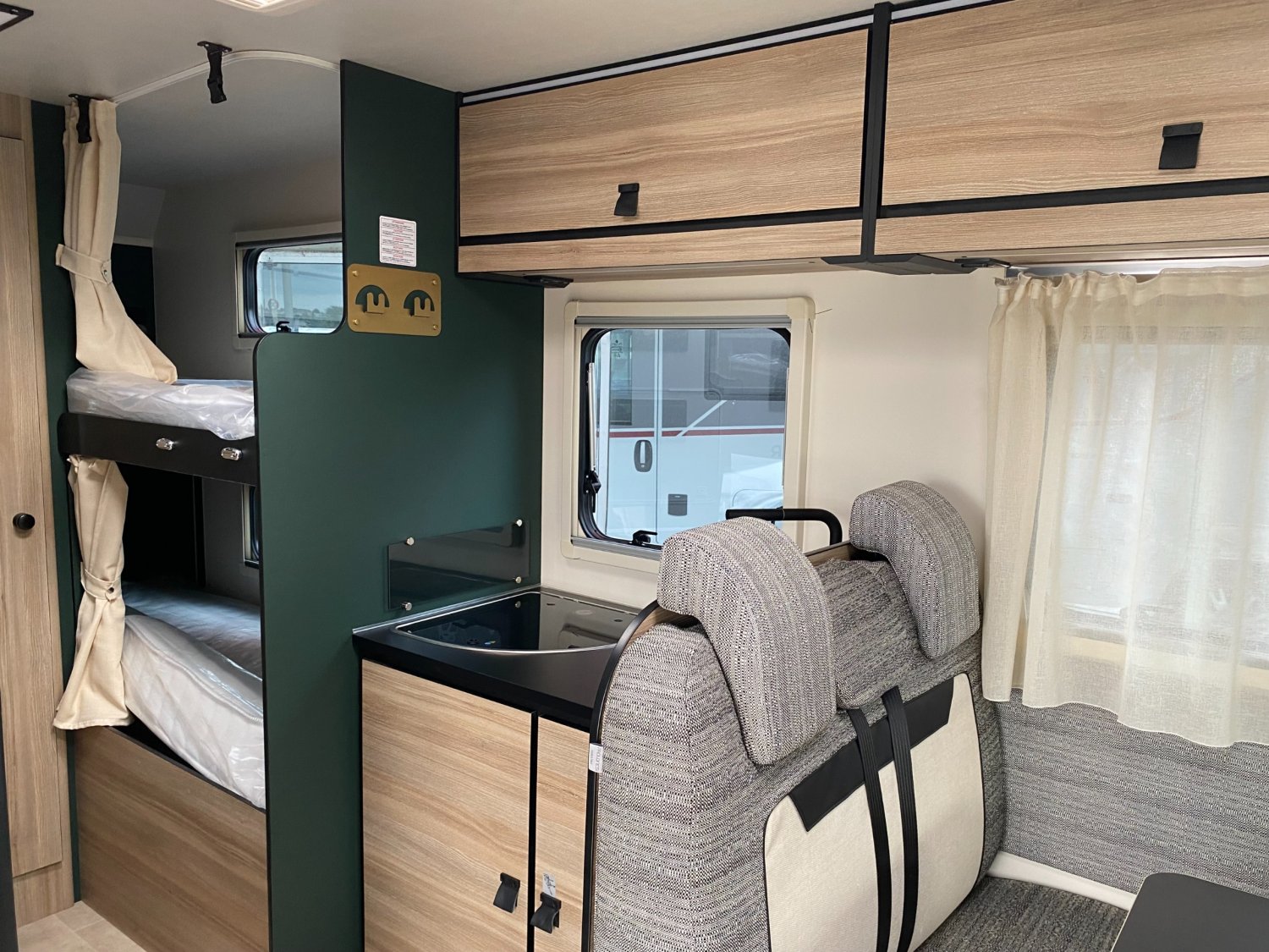 Lits double superposés, Régulateur et limiteur de vitesse, Caméra arrière, Double airbag, Rétroviseurs électriques avec dégivrage, Capteurs de stationnement avant, Assistance au maintien dans la voie, Radio DAB/USB/MP3/BLUETOOTH avec commandes au volant, Essuie-glaces automatiques avec capteurs de pluie, frein à main électrique, Détecteur d’angle mort et assistant de freinage, Écran tactile 12 pouces