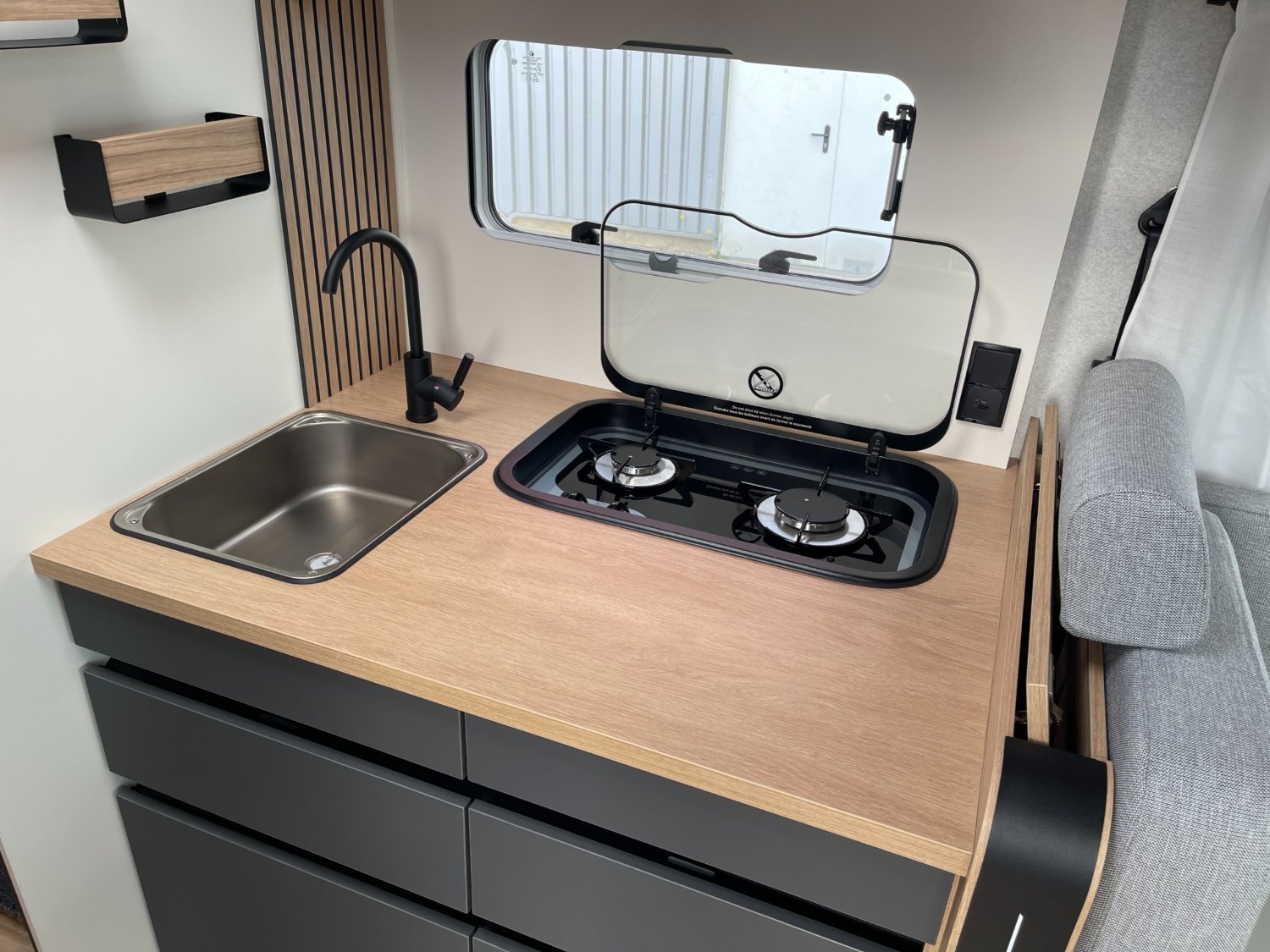 Hauts parleurs dans la cabine et la cellule, PACK MEDIA 7 comprenant, Autoradio 7"Pioneer, DAB, AppleCar/Android Auto, caméra de r, SELLERIE BI-TON ET BI-MATIERE SIMIL ET TISSU "SAND", CABINE NOIR, BATTERIE LITHIUM 210AH, 2 PANNEAUX SOLAIRES 100W MONOCRISTALLIN TOPCON HAUTE PERFORM, PACK JANTES comrpenant, Jantes alliage 16", voalnt simili aérateurs gris alu, REFRIGERATEUR A COMPRESSION THEDFORD, STORE BANNE, TIROIR BAS DE CAISSE, LIT PAVILLON ELECTRIQUE AVEC SOMMIER A LATTES, BOOSTER CHARGE RAPIDE POUR BATTERIE, CHAUFFAGE HYBRIDE TRUMA D6E, DOUCHETTE EAU FROIDE/CHAUDE DANS LA SOUTE ARRIERE