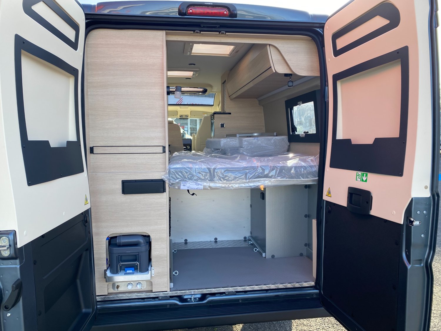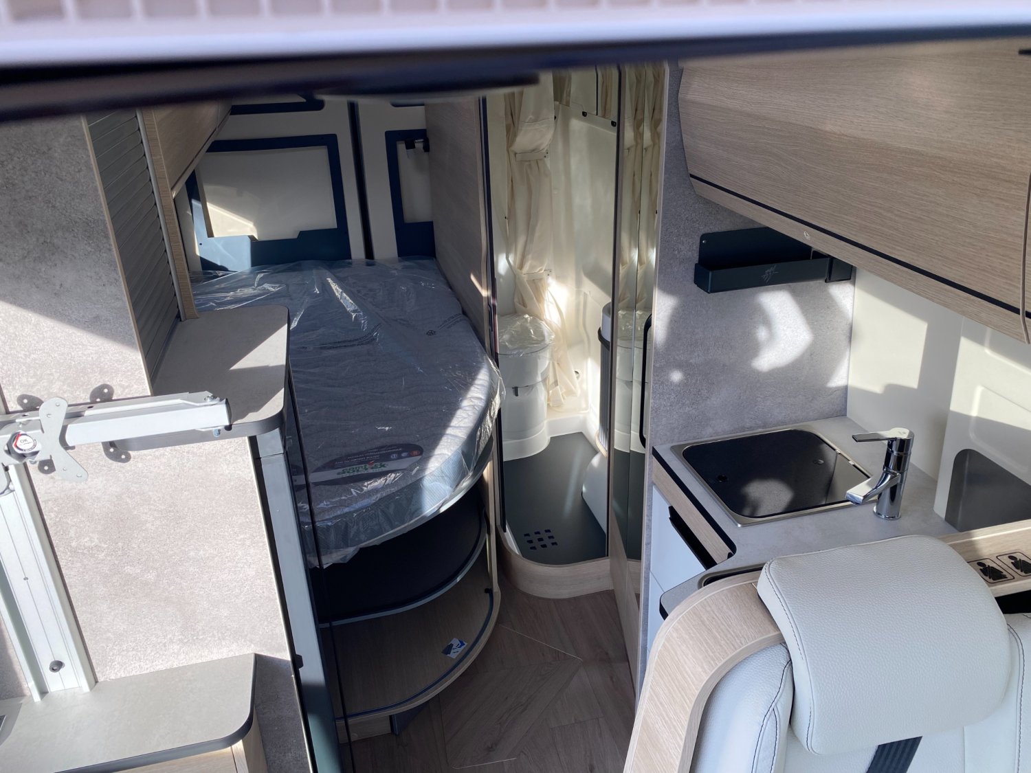 Habillage gris aluminium sur bouche d'aération, Volant et pommeau de levier de vitesses confort, Système de fixation ISOFIX, Suspension essieu arrière renforcée, Douchette extérieure avec eau chaude / eau froide, Panneau solaire 150 W, Batterie lithium 100 Ah, Jantes en alliage léger 16", Salon spacieux convertible en couchage d'appoint, Réservoir d'eaux usées chauffé, Soute chauffée avec revêtement de protection, Lit à la française : 125 x 198 cm, Maxi salle d'eau arrière, Rétroviseurs extérieurs électriques et dégivrants, Régulateur de vitesse avec limiteur, 2 batteries cellule AGM 92 Ah, Grand réfrigérateur à compression 146 L avec compartiment co, Peinture carrosserie Iron Grey, Caillebotis douche noir, Airbags conducteur et passager