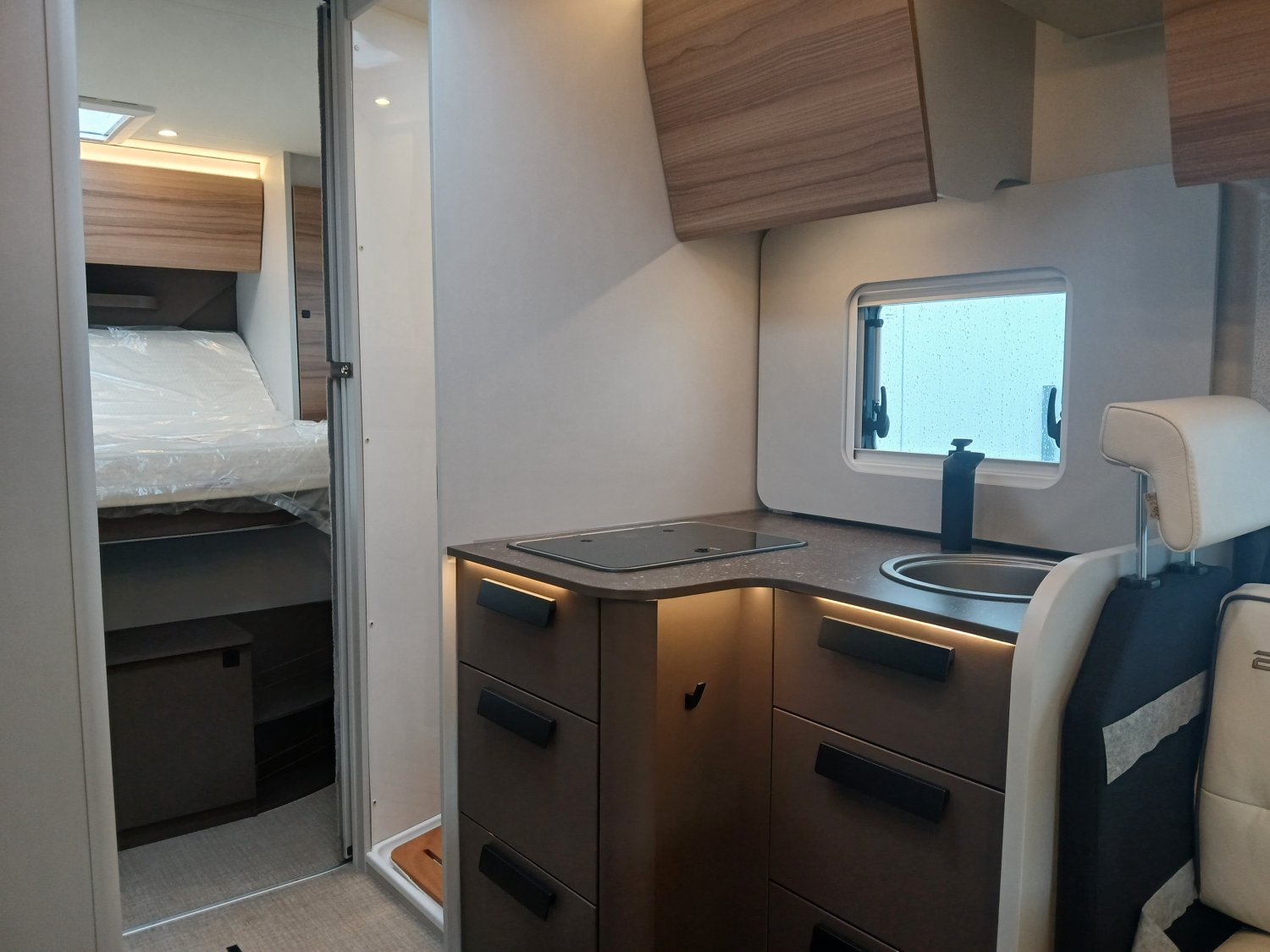 Jantes alu 16" bicolores, Station multimédia avec caméra de recul, Batterie Lithium, Porte d'entrée XL avec baie et moustiquaire, Boîte automatique, Réfrigérateur à compression 131.5l, Banquette salon face-face avec table portefeuille, Lit central réglable en hauteur, Double plancher technique Thermo-Floor isolé et chauffé, Rangements intégrés
