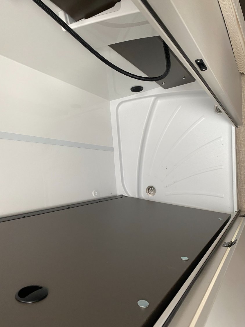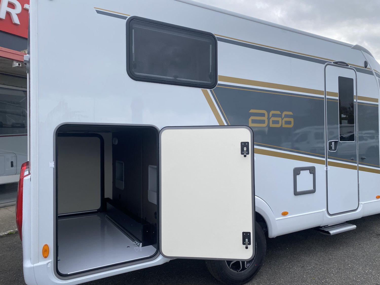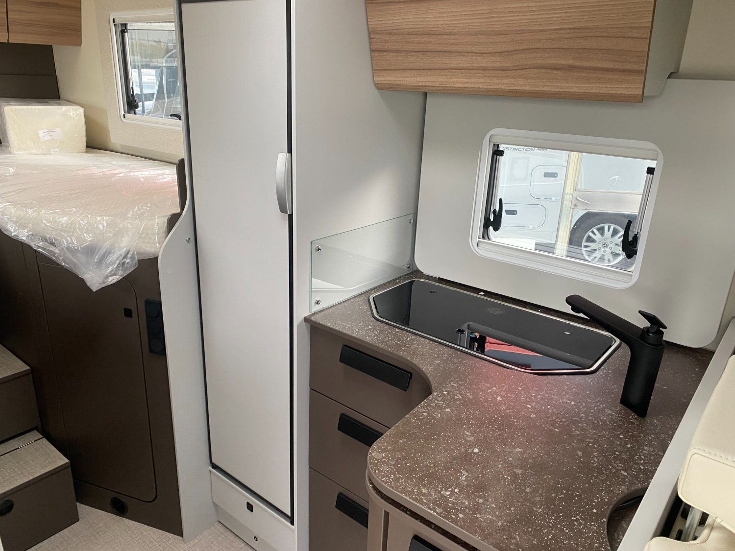 Réfrigérateur à compression 131,5 l, Station multimédia avec caméra de recul, Double plancher technique Thermo-Floor isolé et chauffé avec, Batterie lithium, Boîte automatique 140 ch, Jantes aluminium 16’’ bicolores, Porte d’entrée XL avec baie et moustiquaire
