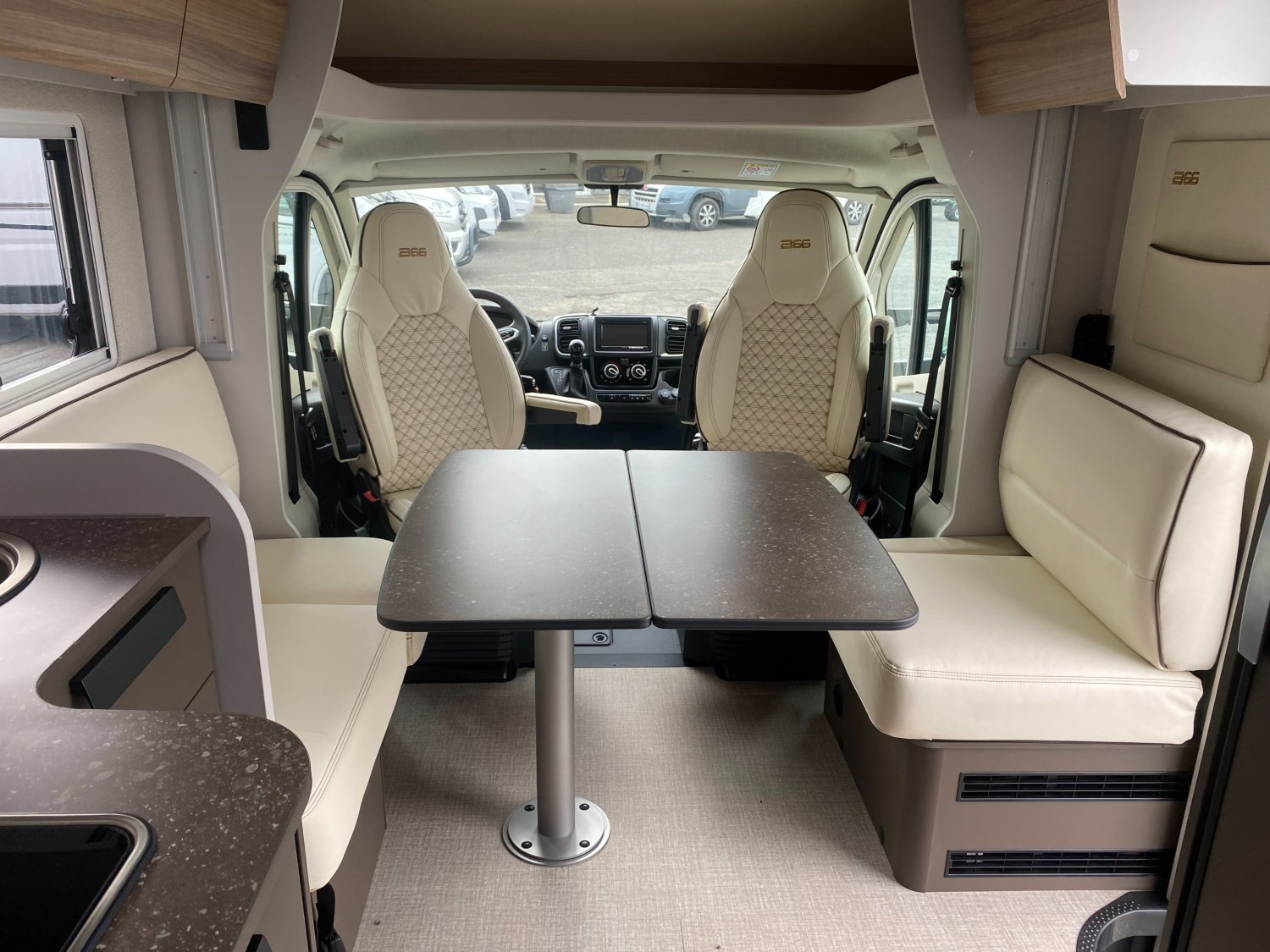 Réfrigérateur à compression 131,5 l, Jantes aluminium 16’’ bicolores, Lit central réglable en hauteur, Porte d’entrée XL avec baie et moustiquaire, Station multimédia avec caméra de recul, Batterie lithium, Boîte automatique 140 ch, Double plancher technique Thermo-Floor isolé et chauffé