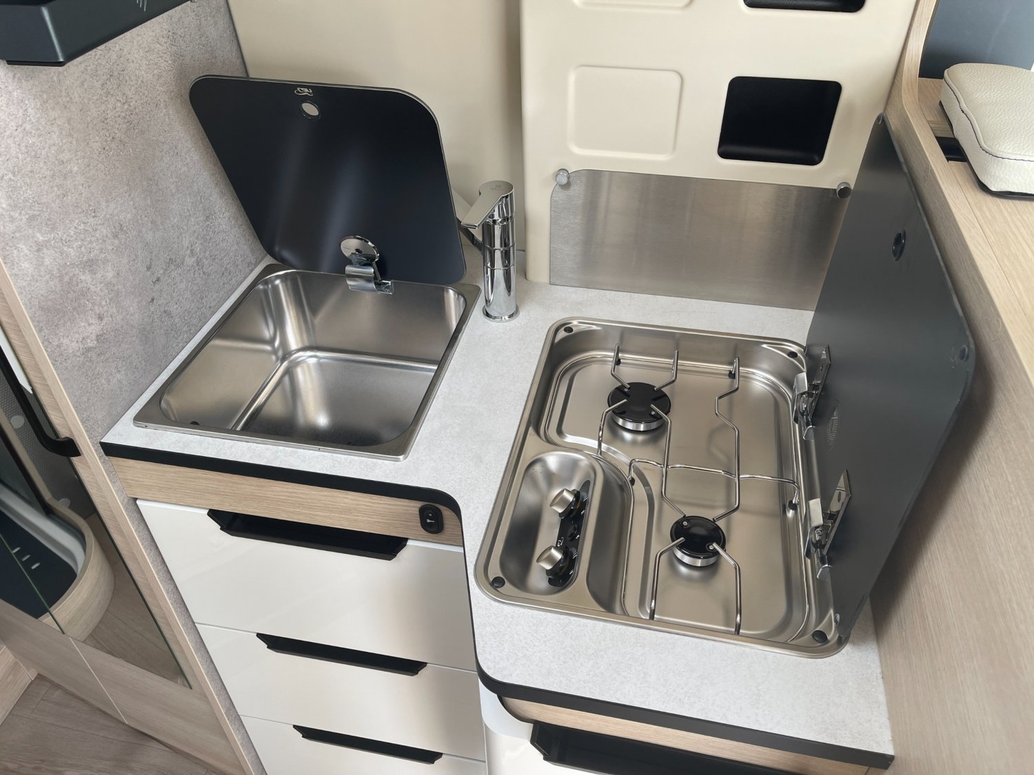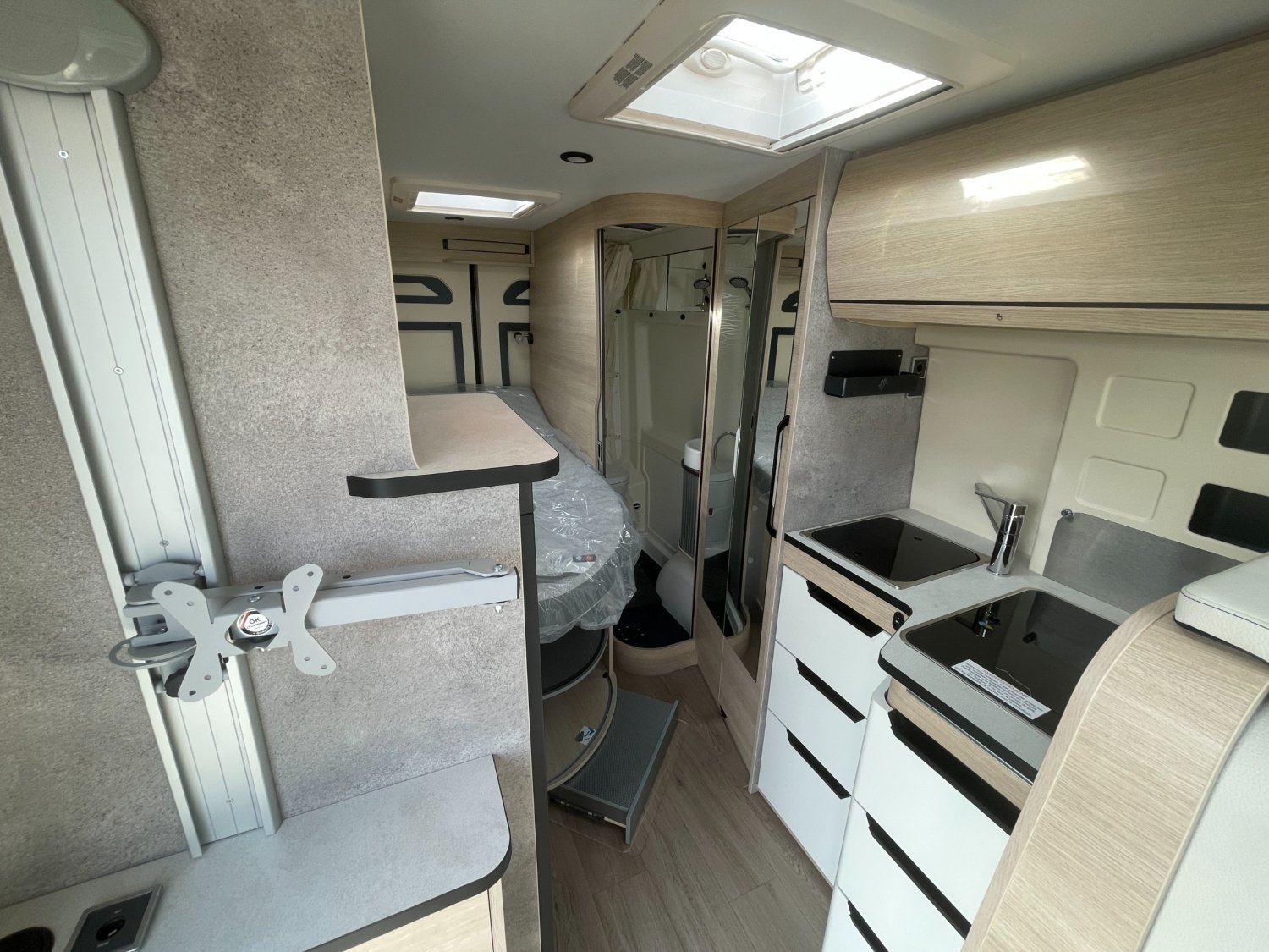 REGULATEUR DE VITESSE AVEC LIMITEUR, ECS AVEC ASR, ROM AIDE AU DEMARRAGE EN COTE, FREINAGE ABS, RESERVOIR EAUX USEES CHAUFFE, MARCHEPIED ELECTRIQUE, COFFRE DE RANGEMENT SOUS DINETTE, PRISE EXTERIEURE 230V, EXTANSION PLAN DE TRAVAIL AVEC REVETEMENT INTEGRE, CHAUFFAGE TRULA COMBI 4 AVEC PANNEAU CDE CP PLUS, 2 BATTERIES CELLULE AGM 92AH, PRE CABLAGE 12v HDMI POUR TV+SUPPORT, DIRECTION ASSISTEE ELECTRIQUE, PANNEAU DE COMMANDE DIGITAL, PRE CABLAGE PANNEAU SOLAIRE, GOUTIERE DE PROTECTION PORTE LATERALE AVEC ECLAIRAGE LED, GRANDES PENDERIES LINGERE, MAXI EVIER INOX LISSE AVEC COUVERCLE VERRE NOIR BRILLANT, GRAND REFRIGERATEUR A COMPRESSION 146L, DOUCHETTE EXTERIEURE AVEC EAU CHAUDE/EAU FROIDE, SUSPENSION ESSIEU ARRIERE RENFORCEE, SYSTEME DE FIXATION ISOFIX