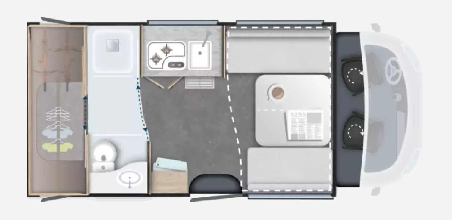 REGULATEUR / LIMITEUR VITESSE, DOUBLE AIRBAG, ESP, RETROVISEURS ELECTRIQUES DEGIVRANTSS, START & STOP, JANTES ACIER AVEC ENJOLIVEUR 16" GRIS, SIEGES CABINE PIVOTANTS REGLABLES EN HAUTEUR AVEC DOUBLE ACC, PRECABLAGE CAMERA RECUL, FIX & GO, PC AVANT PEINTS, PRISE GAZ EXTERIEURE, PRISES USB/USB-C, FEUX ANTI BROUILLARD, PRE-EQUIPEMENT TV, FREIN A MAIN ELECTRIQUE