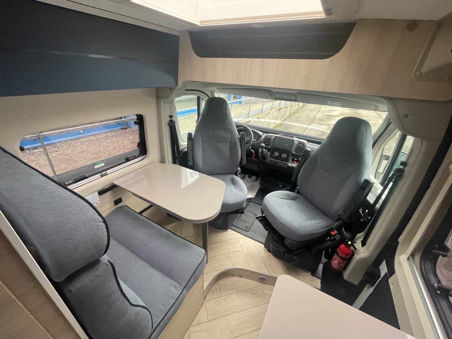 Baies arrière ouvrantes, Salle d'eau avec fenêtre, Climatisation manuelle de cabine, Chauffage au gaz, Marchepied électrique, Précâblage caméra de recul, Régulateur / limiteur de vitesse, ESP, Rétroviseurs électriques dégivrants, Prises USB/USB-C, Jantes acier avec enjoliveurs 15'' gris, Pneus 4 saisons, Pré-équipement TV, Eco pack FIAT, Lanterneau panoramique, Fenêtres double-vitrage avec combiné stores moustiquaire, Rideaux d’isolation thermique des baies de cabine