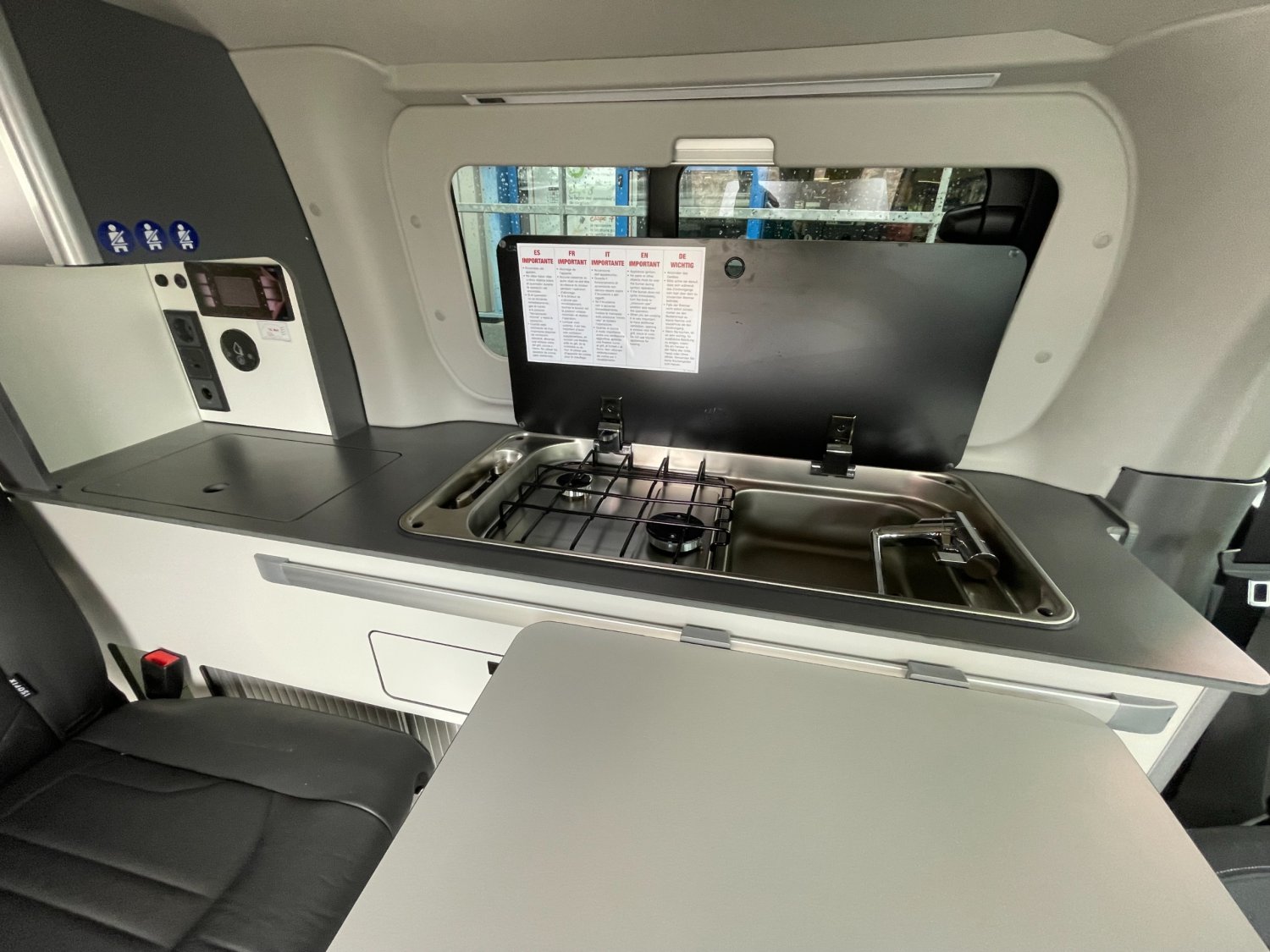 JANTES ALLIAGES 17", TABLE INTEGREE A LA PORTE COULISSANTE, VITRES ARRIERES AVEC STORES A VENTOUSES, -Porta Potti WC portable, DEUX SIEGES ISOFIX, RECHAUD DEUX FEUX ET EVIER, REFRIGERATEUR AVEC CONGELATEUR 42L, *PACK LIVING:, - Chauffage WEBASTO, - convertisseur 12V à 230V, FERMETURE CENTRALISEE, ISOLATION RENFORCEE (thermique&acoustique), DOUCHE EXTERIEURE, CLIMATISATION AUTOMATIQUE