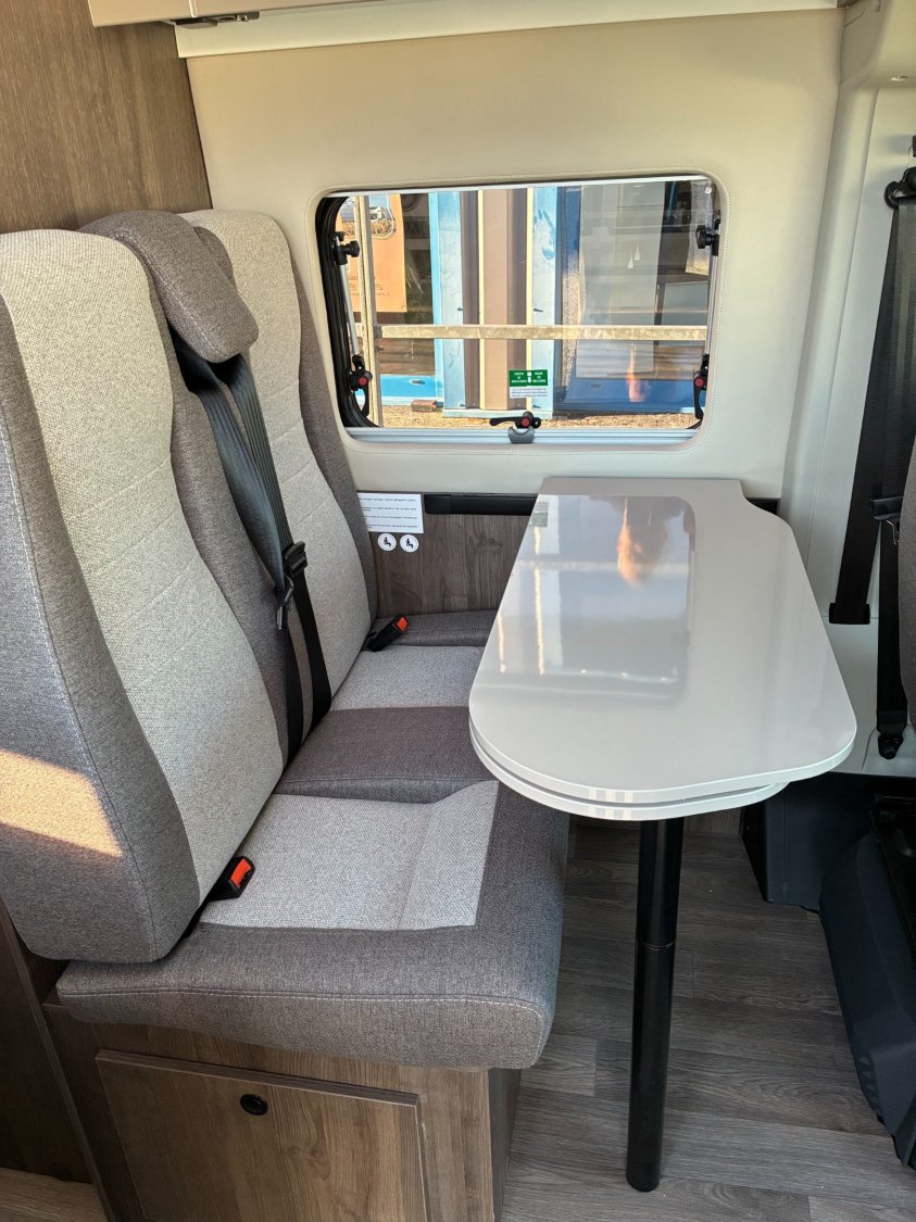 - Panneau solaire 200 W, - MPPT, Grand lanterneau au-dessus dînette (70x50 cm), - Housses de cabine, - Grand lanterneau au-dessus dinette, - Store extérieur, Sièges conducteur et passager tournants, Fenêtres à double vitrage, - Marchepied électrique, - Rallonge table, Table avec rallonge, Réfrigérateur à compression 84 l, - Moustiquaires plissées sur porte latérale, Evier et réchaud 2 feux encastrés, - Isofix, - Rideaux occultation vitres cabine, ISOFIX dans la salle à manger, PACK UP :, - Radars de recul, Rétroviseurs électriques et dégivrants, Vitres électriques, Régulateur de vitesse avec limiteur, Rideaux occultation vitres cabine