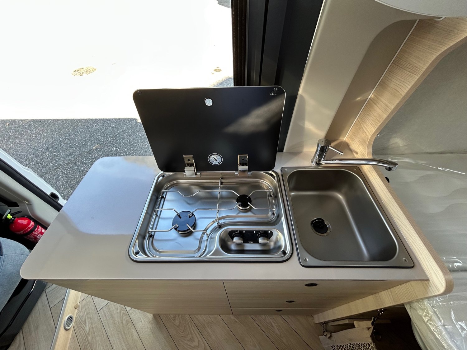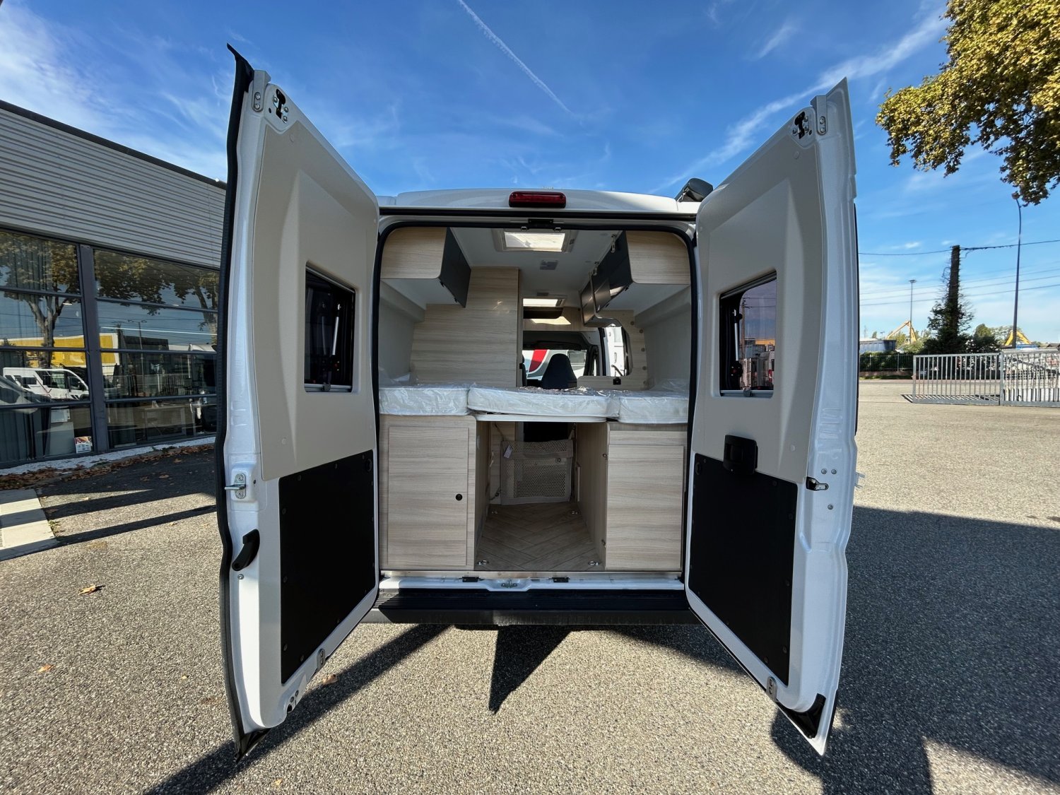 Fourgon aménagé ultra compact et polyvalent (5.41 m). 4 places carte grise / 2 couchages. Motorisation 2.2 L – 140 ch sur porteur Citroën. Cuisine équipée, salle d’eau complète, chauffage performant, frigo 84 L et multiples rangements optimisés. Design intérieur moderne 2026, excellente isolation et maniabilité idéale pour voyager partout en toute liberté !