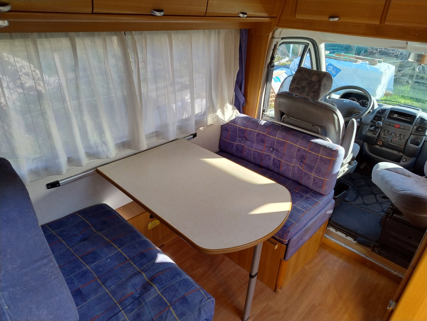 Côté conduite vous pourrez compter sur la fiabilité du célèbre moteur Fiat Ducato 2.8 de 122CH présent sur ce modèle. Quelques petits rafraichissements seront à prévoir pour le relancer vers de belles années. Contrôle technique valide et test d’étanchéité encours de réalisation.