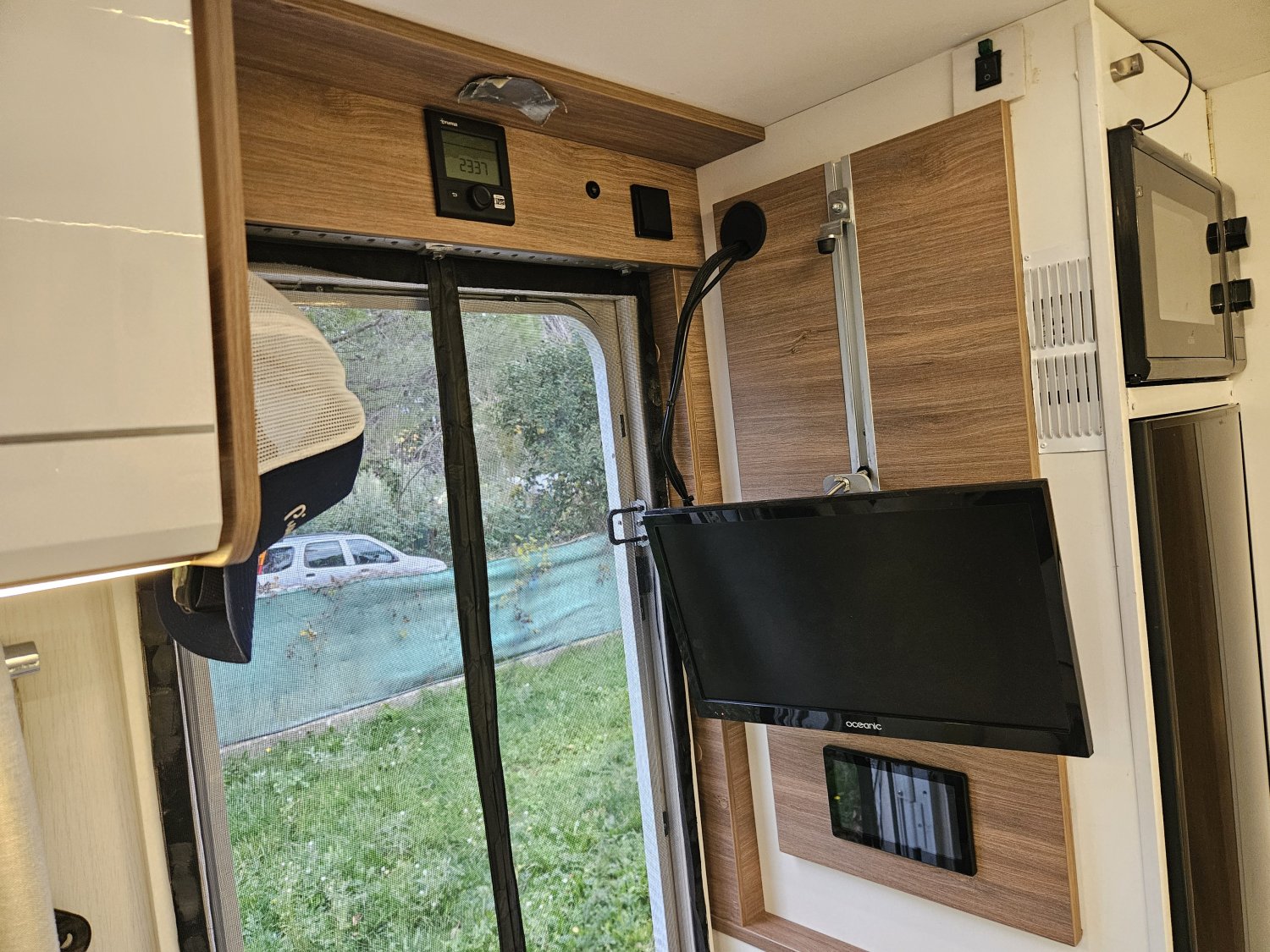 Une antenne satellite, décodeur fransat, 2 TV 24", un autoradio, une caméra de recul couleur, une climatisation cabine.