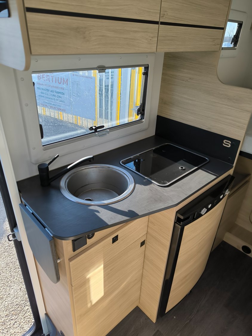 Compact / lit transversal sur grande soute avec 2 portes d'accès / salle d'eau VARIO