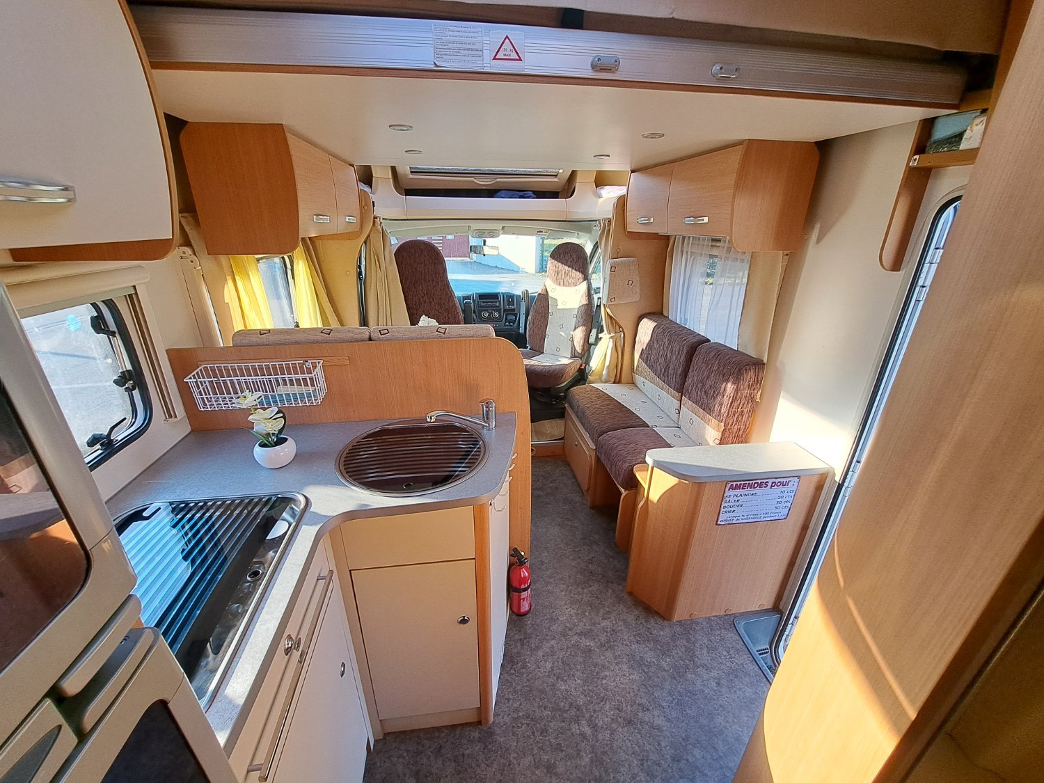 Couchage : Lit dinette (215 x 110 cm et x cm), Lit permanent arrière transversal (204 x 138 cm), Lit de pavillon (191 x 140 cm)
