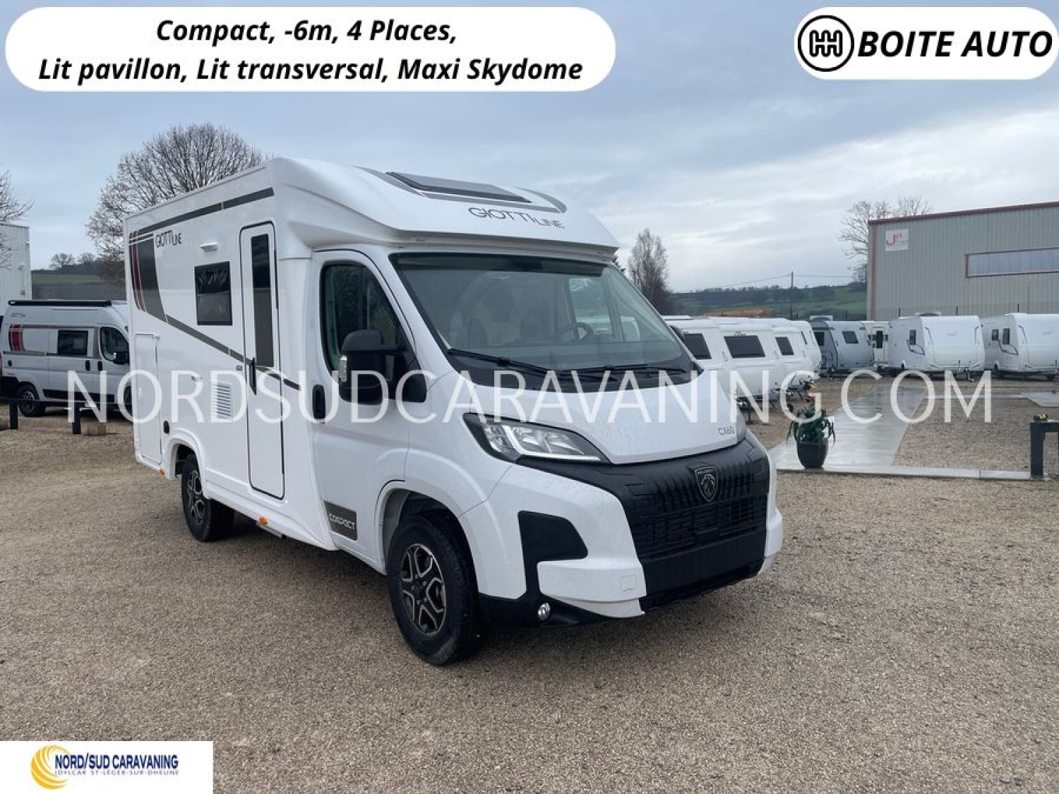 Magnifique Camping-car Profilé Compact Giottiline (Groupe Rapido) sur Peugeot Boxer, Boite Automatique, Lit transversal, Lit pavillon, Grand réfrigérateur, Soute garage…..