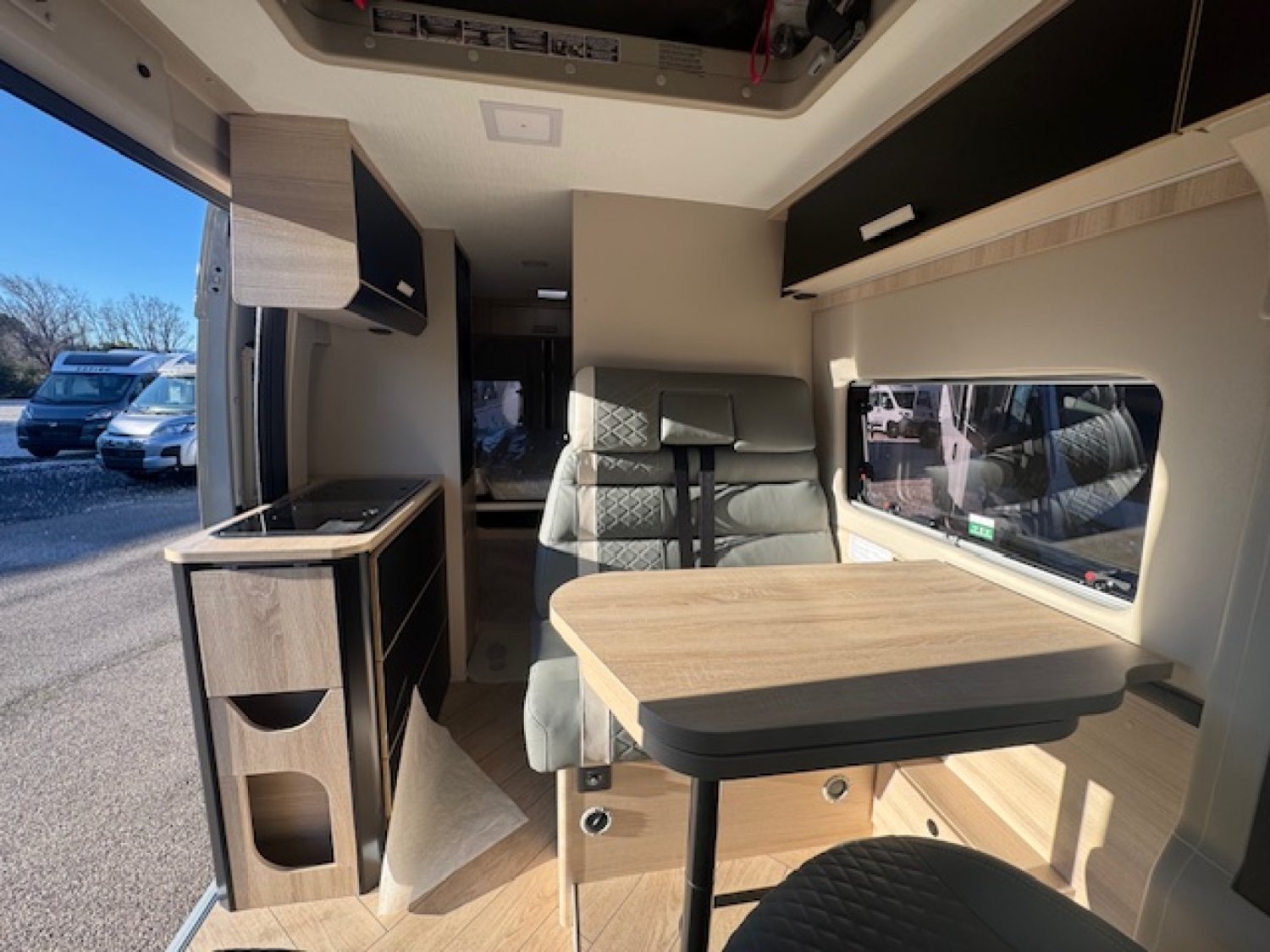 Pour rappel : longueur 5.99m ~ largeur 2.05m ~ hauteur 2.65m ~ places carte grise 4 ~ places couchages 5 ~ places repas 4
