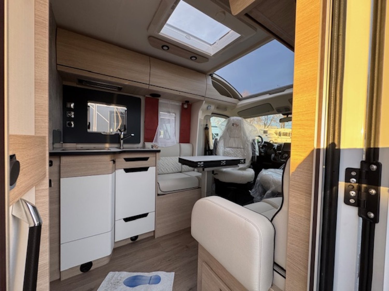 Anti-brouillard, Batterie LITHIUM, Boite automatique, Chauffage TRUMA Combi 4 , Commande au volant pour radio, Fermeture centralisée, Hotte aspirante, Jantes alliage , Lit pavillon électrique, Marche pied électrique, Moustiquaire de porte cellule, Panneau solaire, Porte cellule vitrée, Régulateur de vitesse, Réservoir carburant 90 L, Réservoir eaux usées isolé, Rétroviseurs électriques, Station multimédia Pioneer avec caméra, Stores plissés cabine, Traction +, Vitre electrique, Volant et levier de vitesse cuir