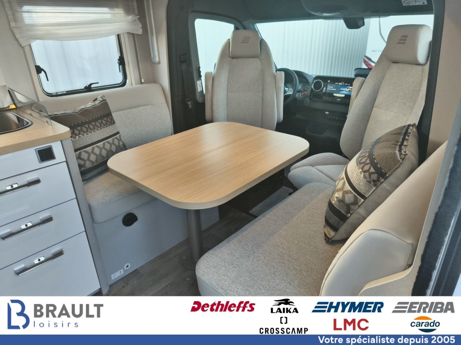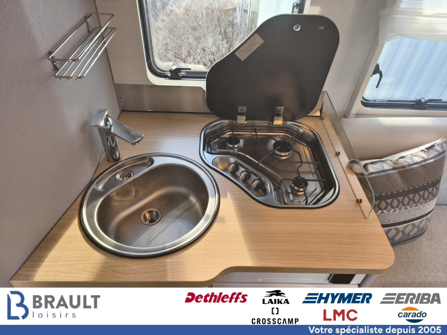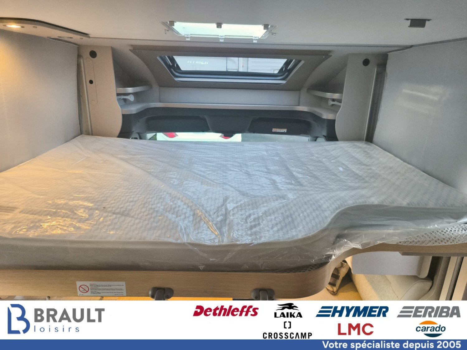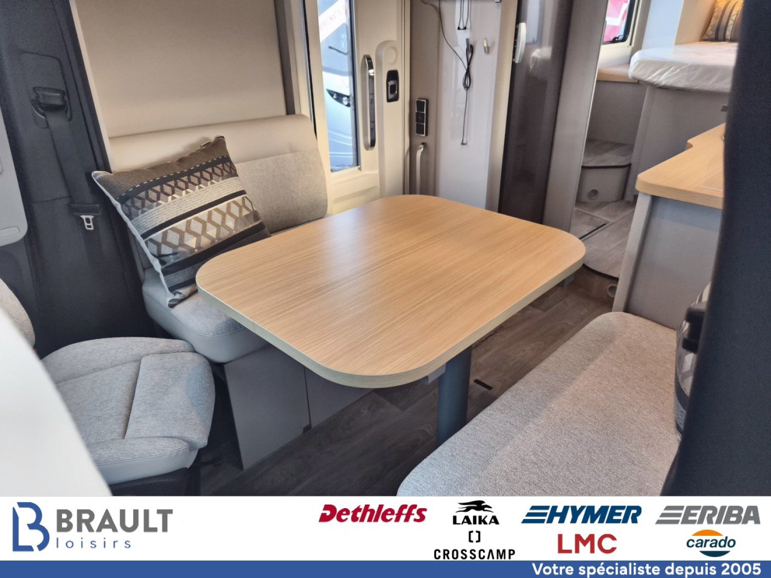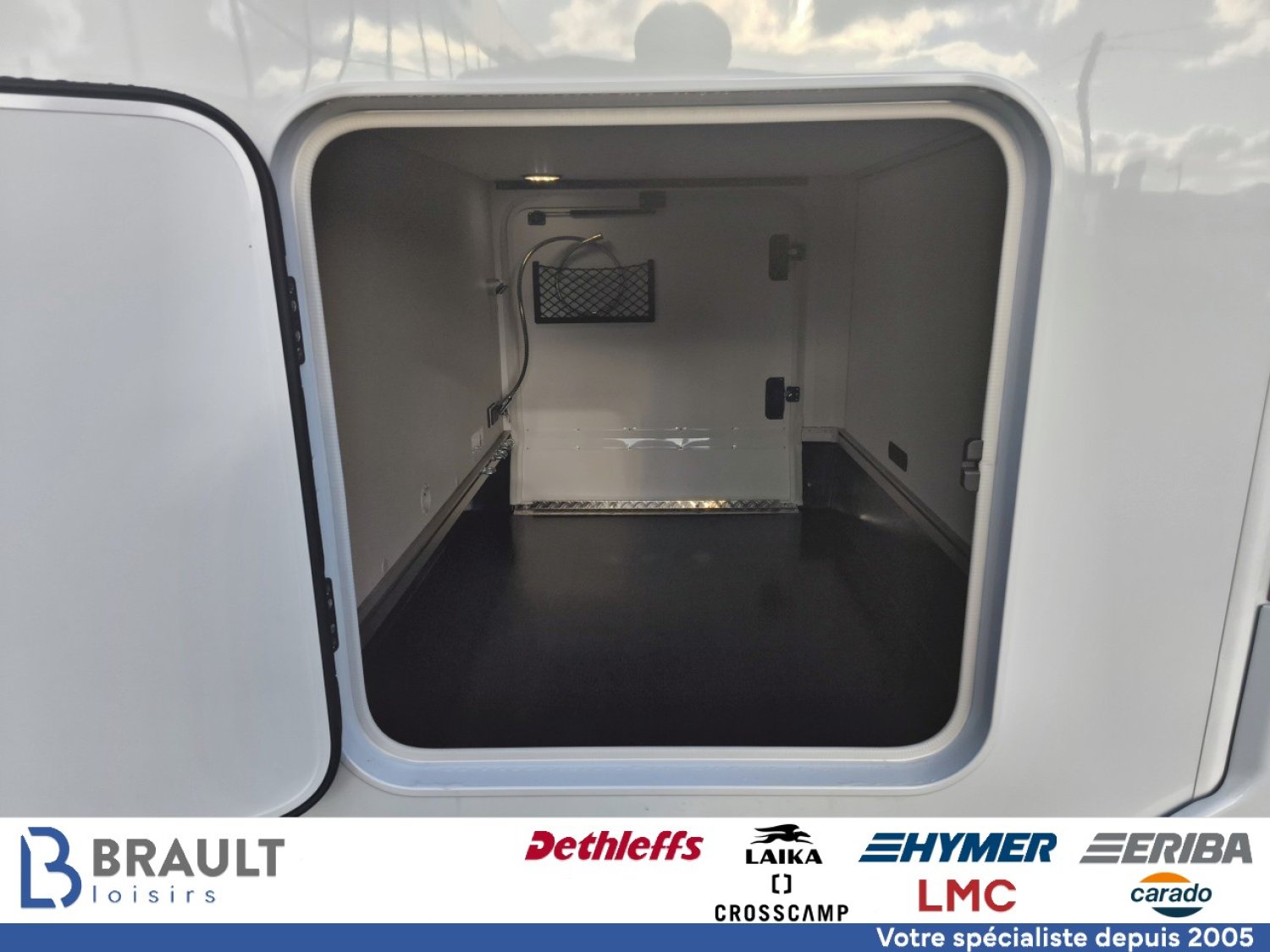 Prises supplémentaires : 4 x 230 V / 1 x 12 V / 1 x double-USB Coussins avec housses (4 pièces) Éclairage d'ambiance Draps-housses sur mesure pour lits arrière adaptés aux contours du matelas Trappe extérieure côté gauche, 65 x 65 cm