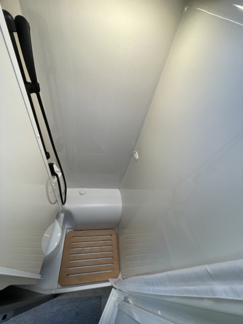 La douche Vario, spacieuse et modulable, apporte un réel confort à l’usage.