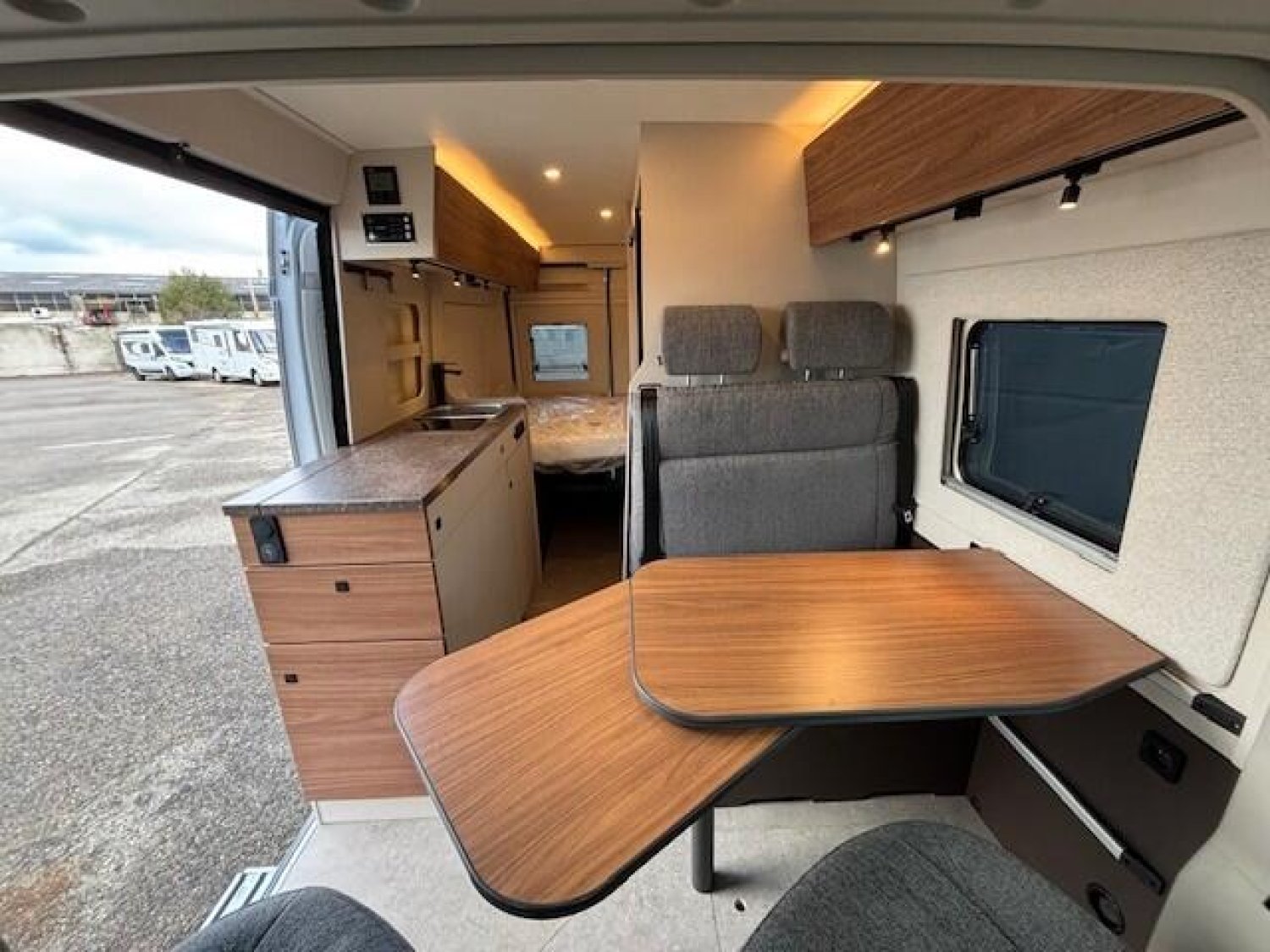 PACK CONFORT CELLULE Moustiquaire de porte coulissante Eclairage indirect Led Habillage des parois intérieures en tissu Baies à encadrement sur portes arrières Baie à encadrement arrière gauche Baies à encadrement espace dînette Baies sur porte coulissante Stores plissés occultants cabine Marchepied électrique, 700 mm : 3520 €