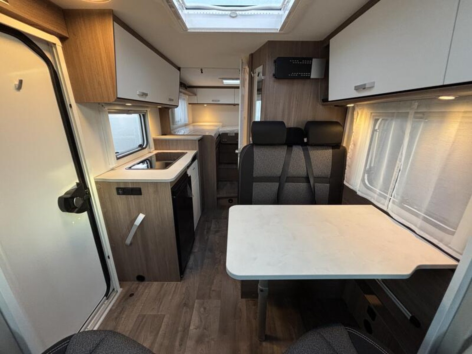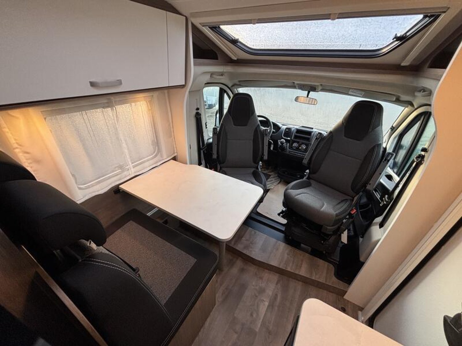 Pack PRO + Pack Optique 1 : pare-chocs peint - Pack Optique 2 : jantes alliage 16" bicolores - Pack Confort : Couleur extérieure gris Artense métallisé, Stores plissés de cabine, Toit panoramique de cabine, Coloris spécifique des portes des meubles de pavillon en blanc, Cosy Sérigraphie pro+, Store extérieur 4 m, Réservoir eaux usées isolé, 2ème trappe extérieure (selon modèle) + Transformation lits jumeaux en lit double : 4449 €