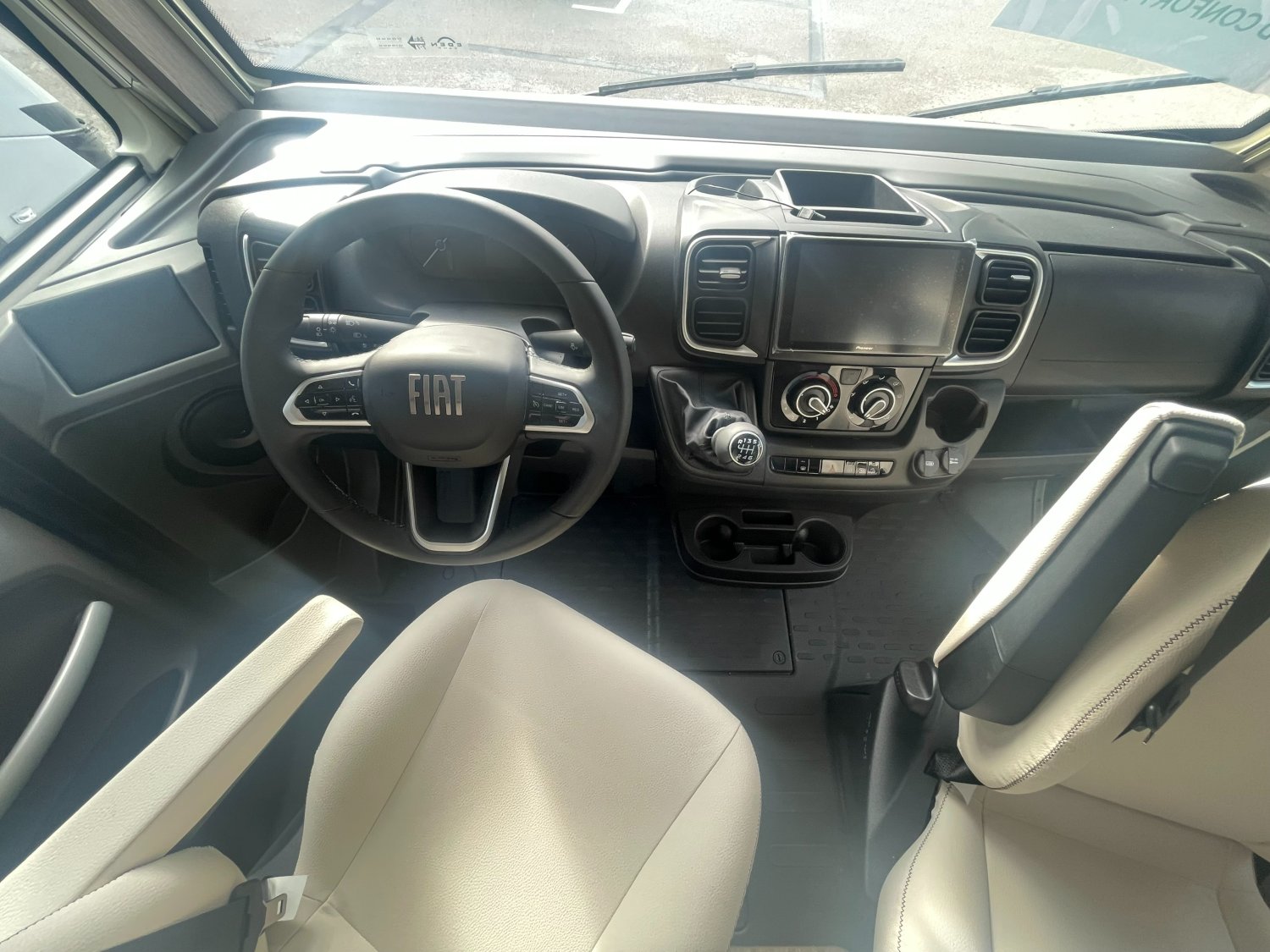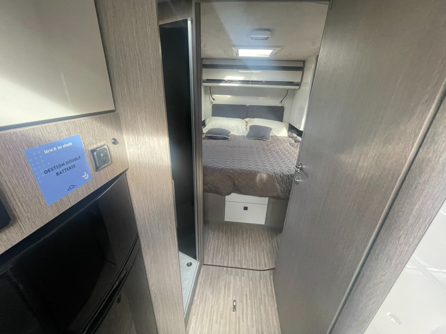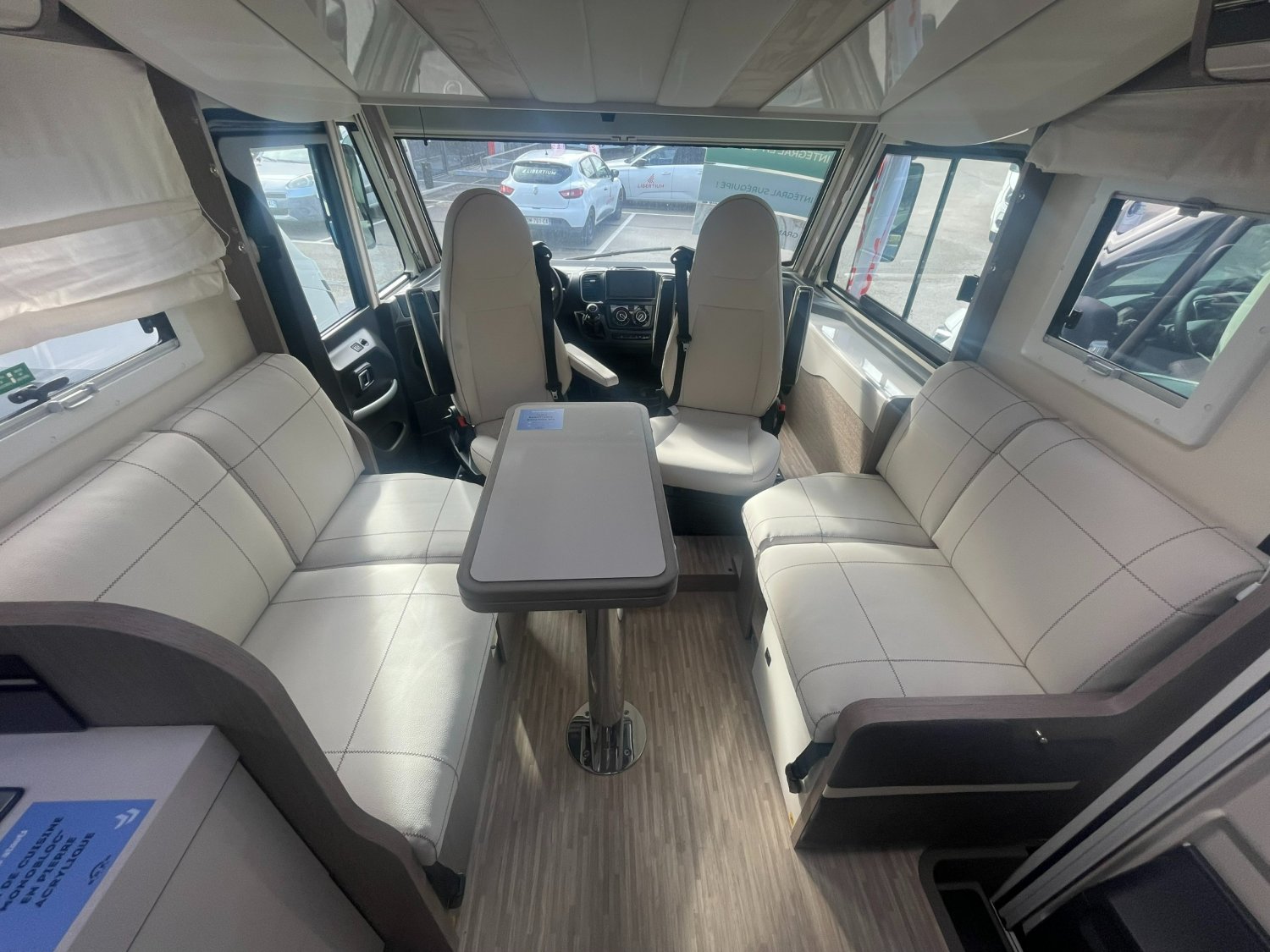 Intégral lits jumeaux, 7,47 mètres, avec grand salon face à face. Les sièges de la cabine pivotent pour s’intégrer au salon constitué de deux banquettes latérales en visà-vis.