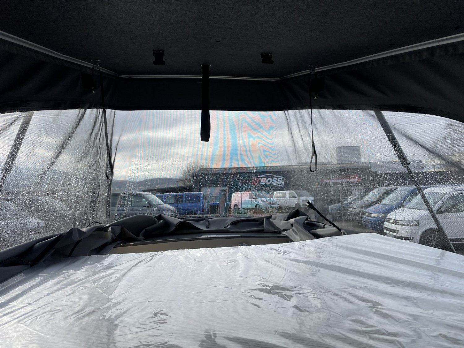 Toit relevable avec un large lit de 207 x 128 cm, avec échelle d’accès