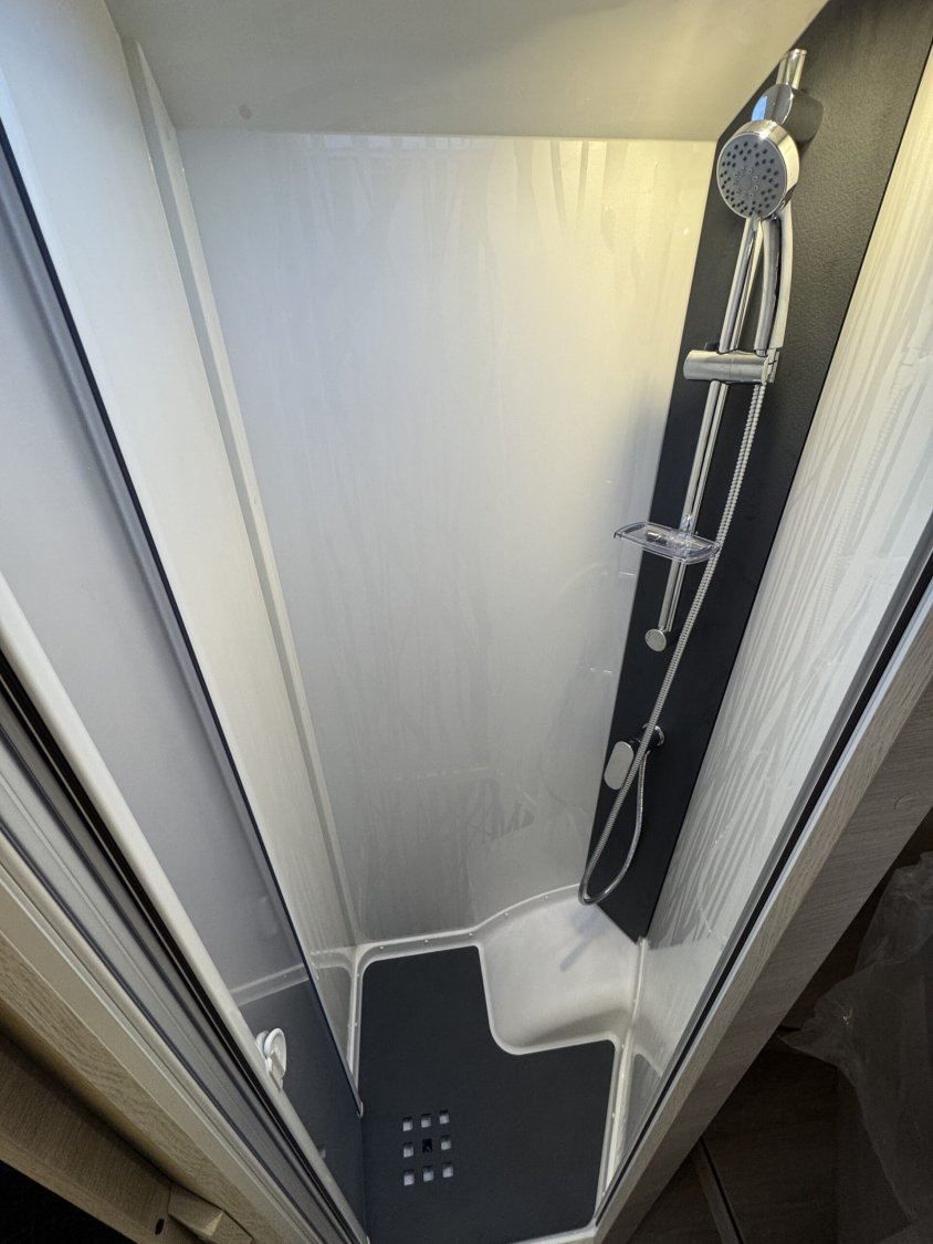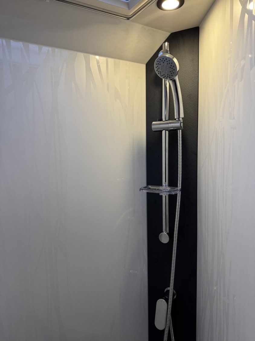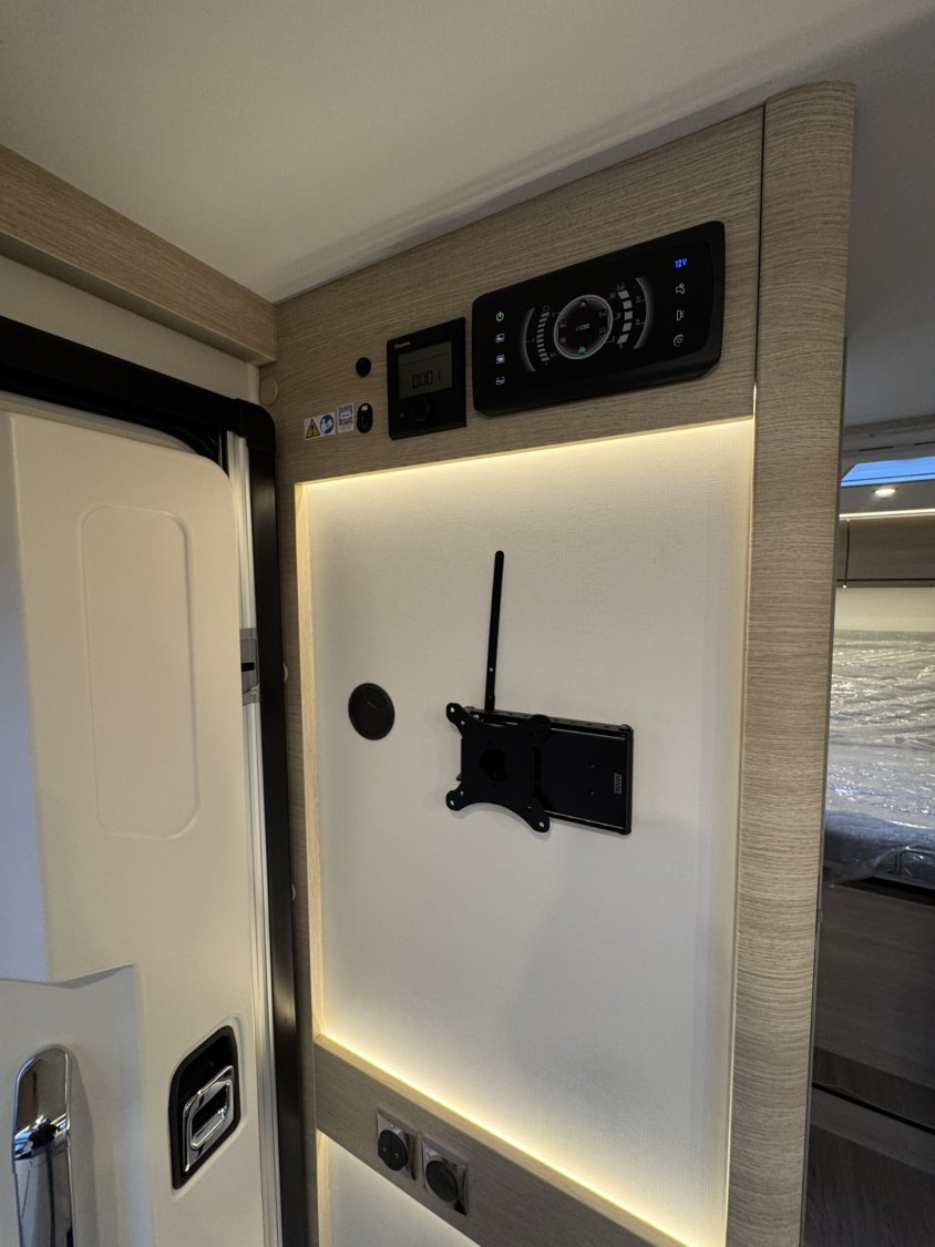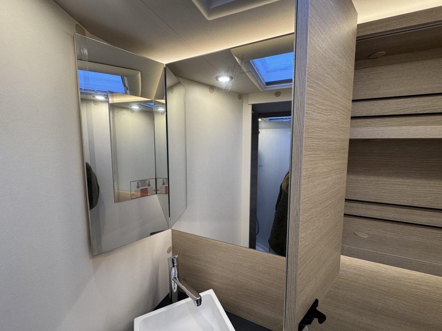 Pack 65e anniversaire : Décoration exclusive édition 65e anniversaire – caillebotis noir dans la douche – Jantes Alu 16 – Volant confort – frein de stationnement électrique – Station multimédias PIONNER avec écran tactile – Batterie Lithium – Panneau solaire – Réservoir d’eaux usées chauffées