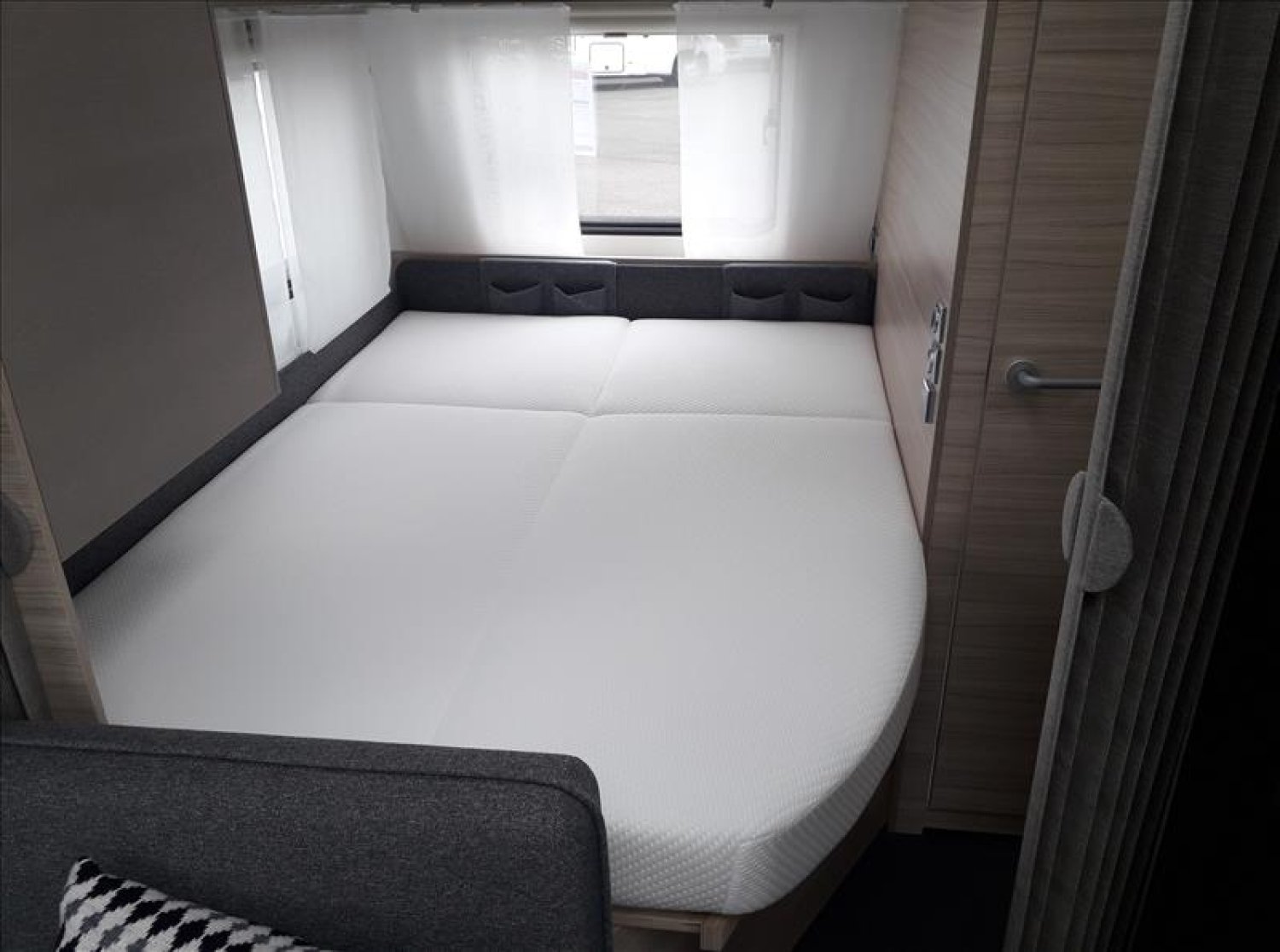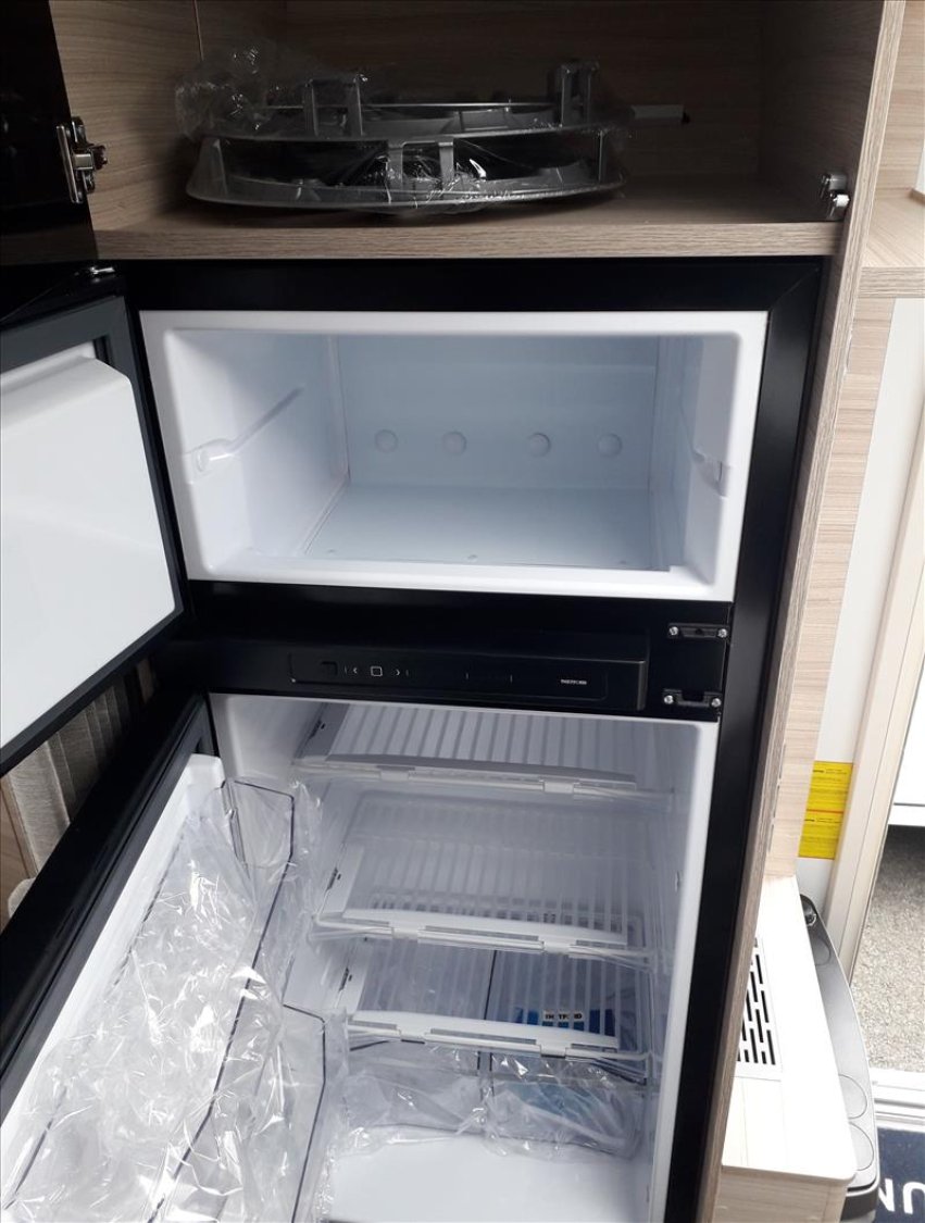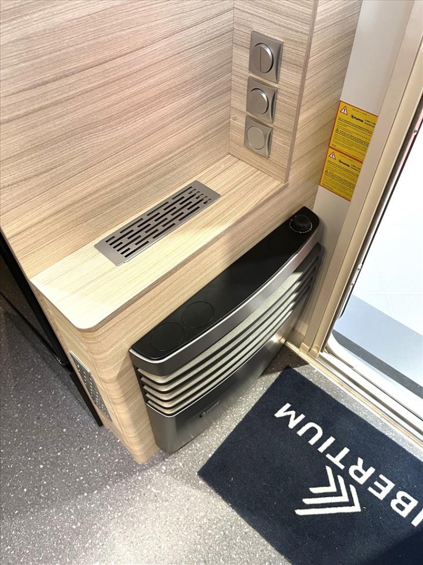 Vérins stabilisateurs standard, Vidange centrale d'eaux usées, Prise de courant 230V, Réchaud 3 feux avec allumage électrique, Réfrigérateur 167L, Jantes an acier, Lanterneau mini heki 400*400, Moustiquaires et stores obscurants sauf toilette, Table relevable avec pied télescopique, 4 coussins décoratifs, Boiler 5L truma terme, Chauffage à gaz Truma S3004, Porte d'entrée 2 pièce sans fenêtre